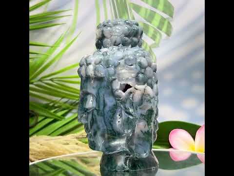 Moss Agate Blue Crystal Buddha 1412g