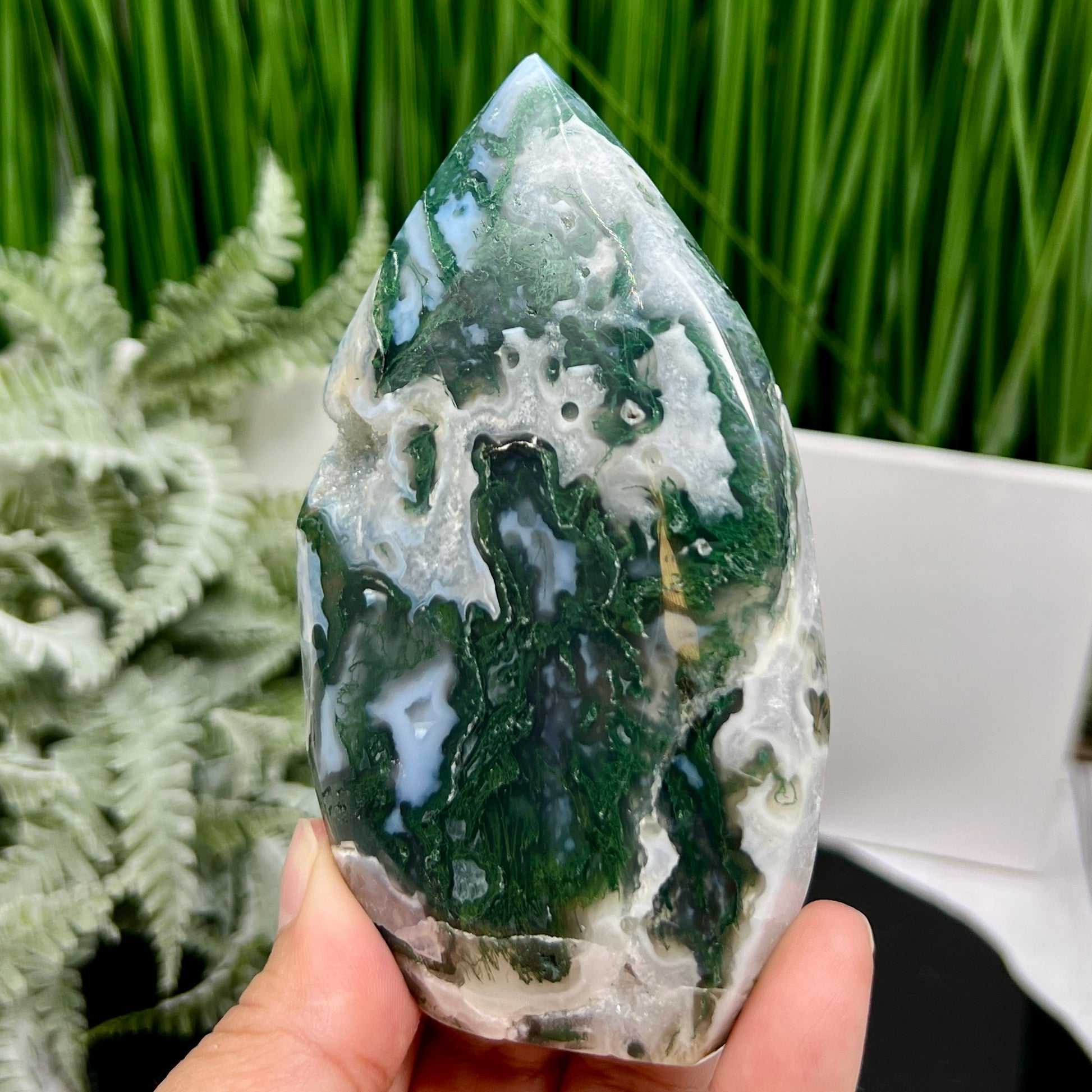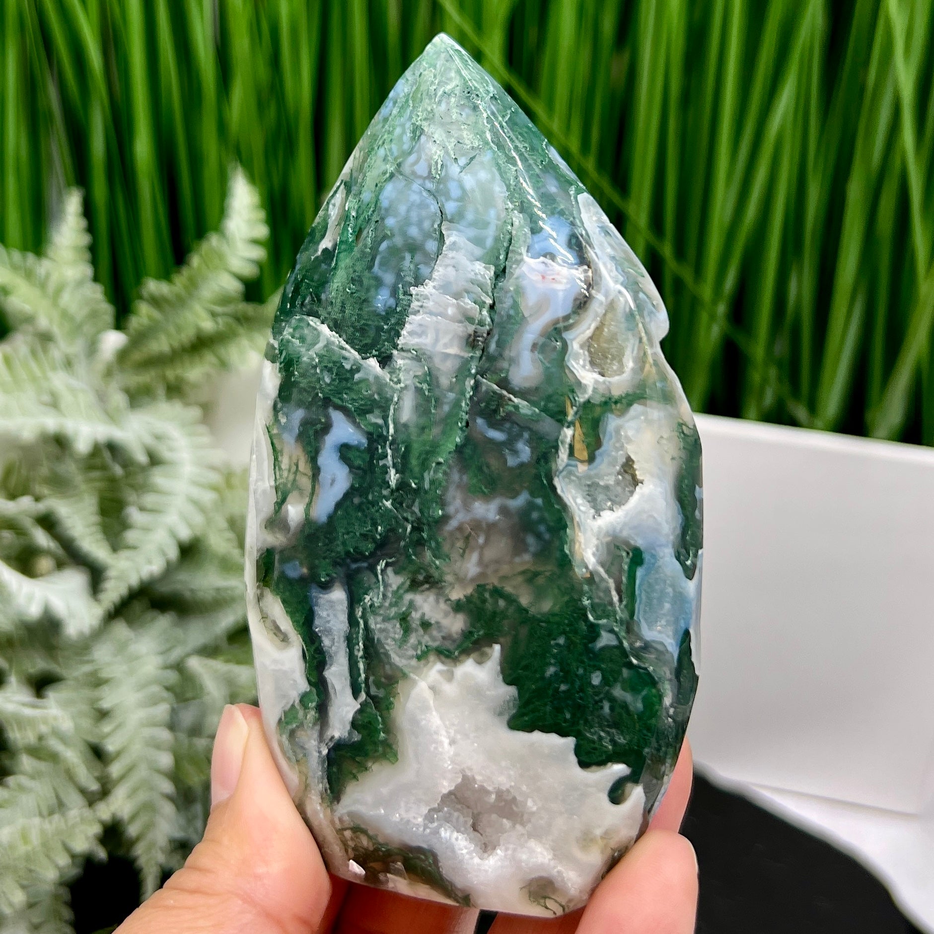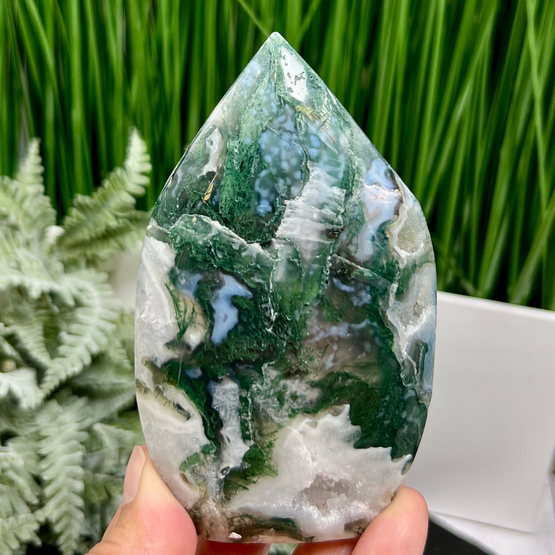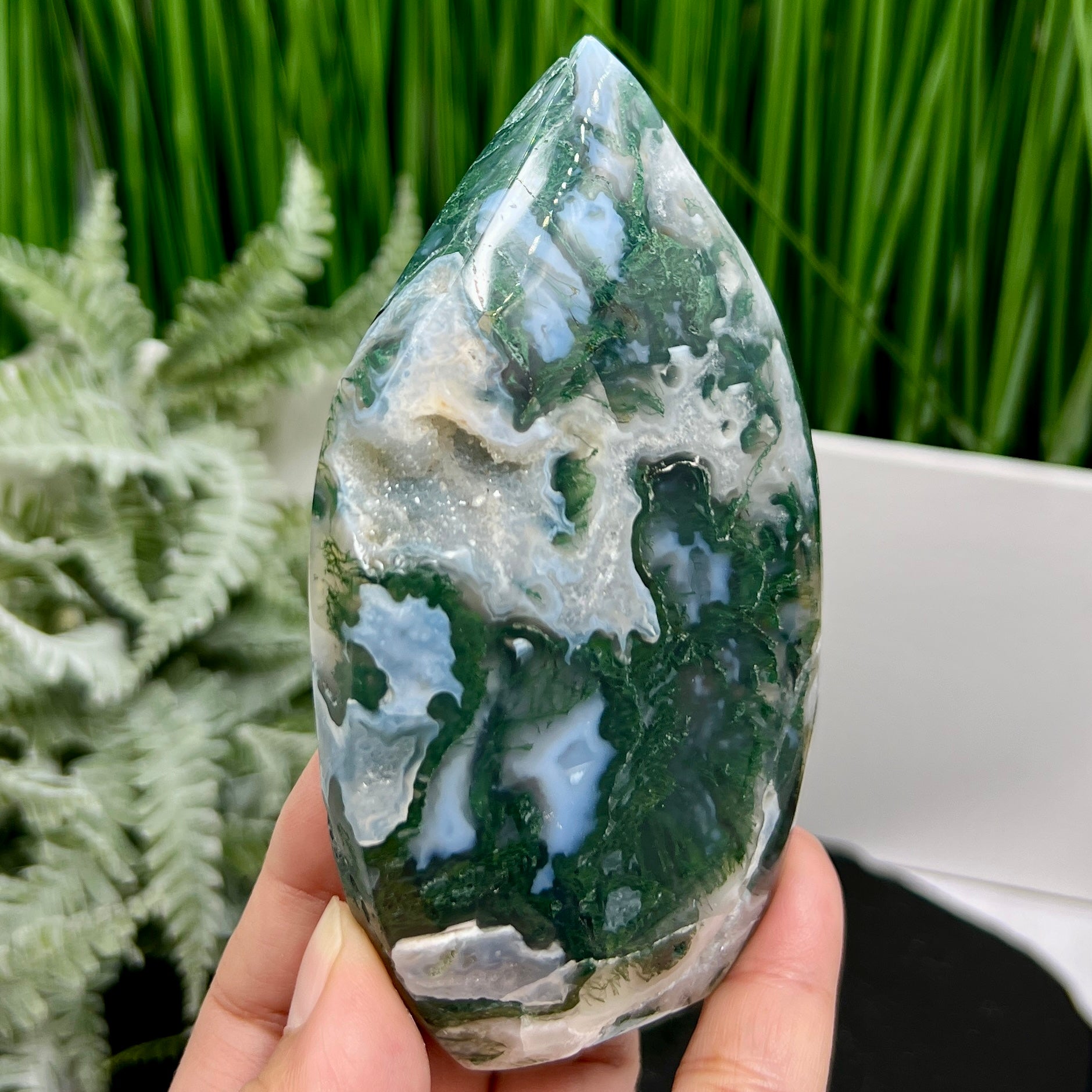 Moss Agate Quartz Druzy Flame High Quality Crystal 262g 112mm