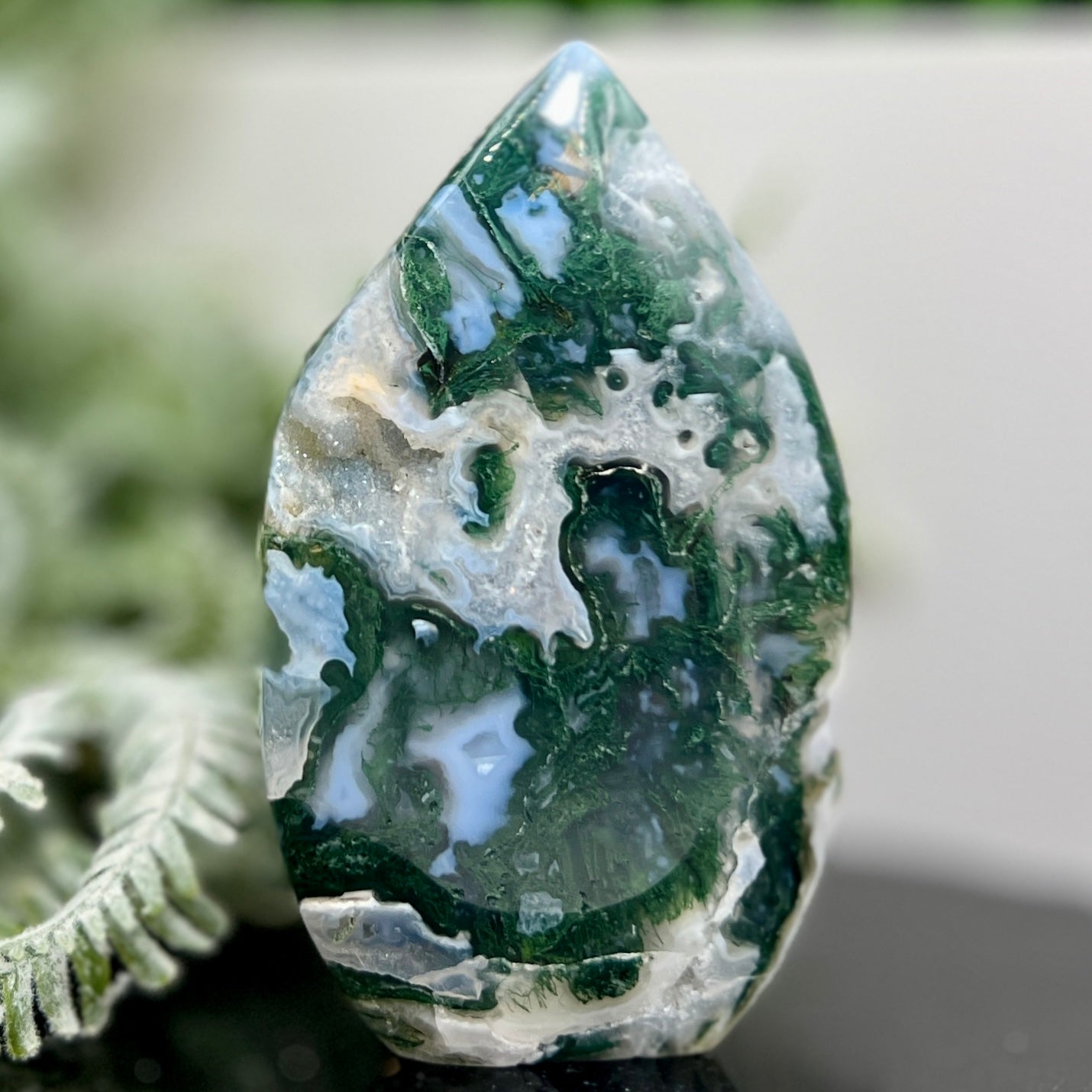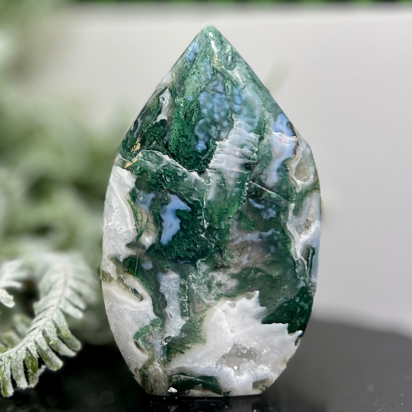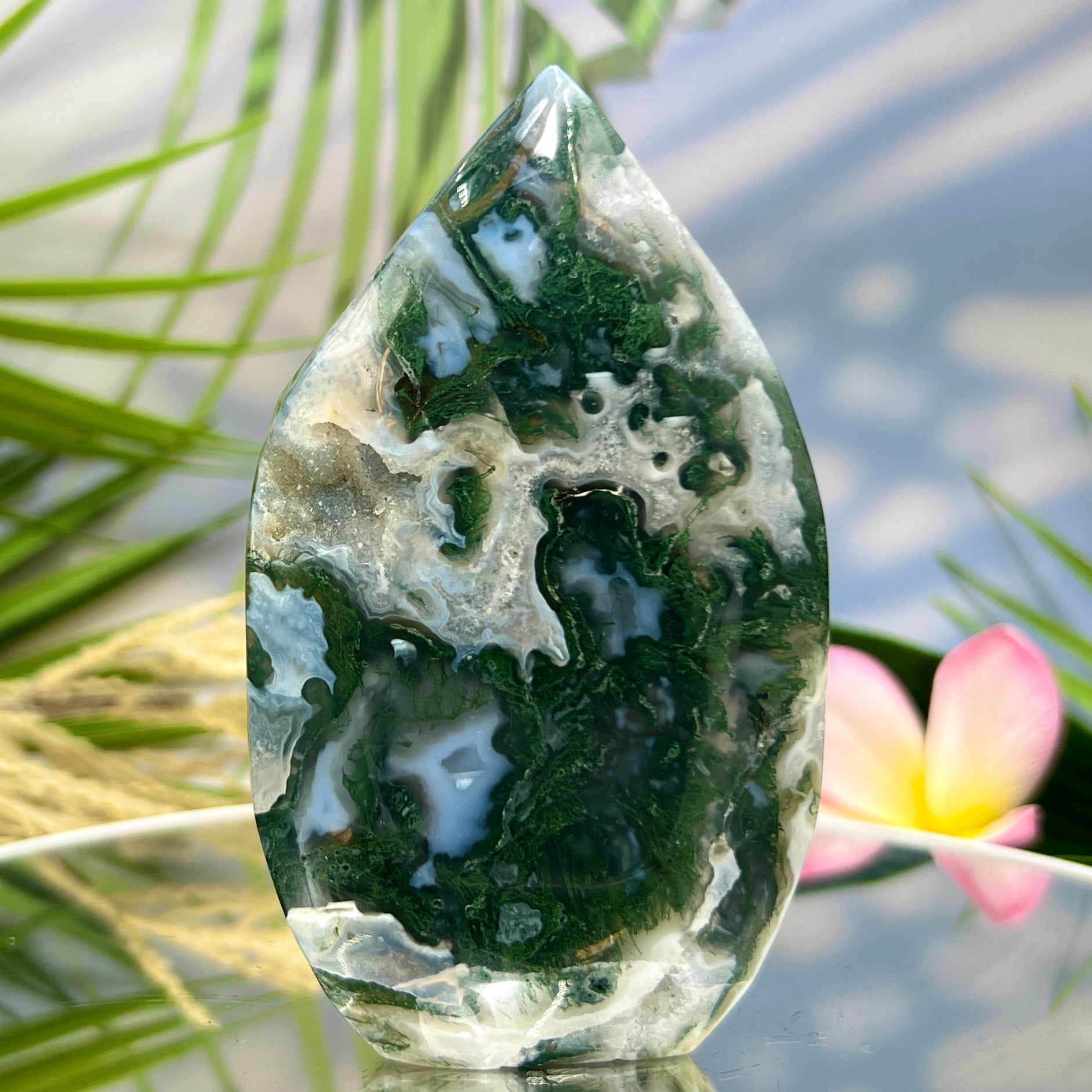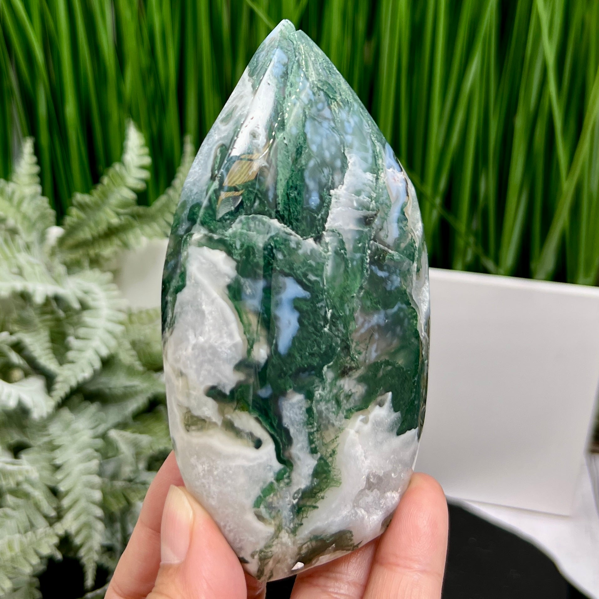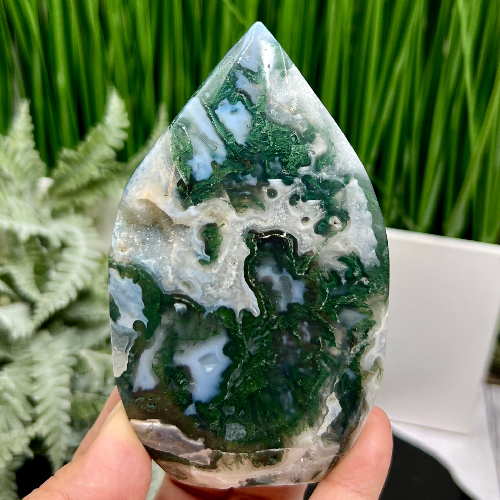 Moss Agate Quartz Druzy Flame High Quality Crystal 262g 112mm