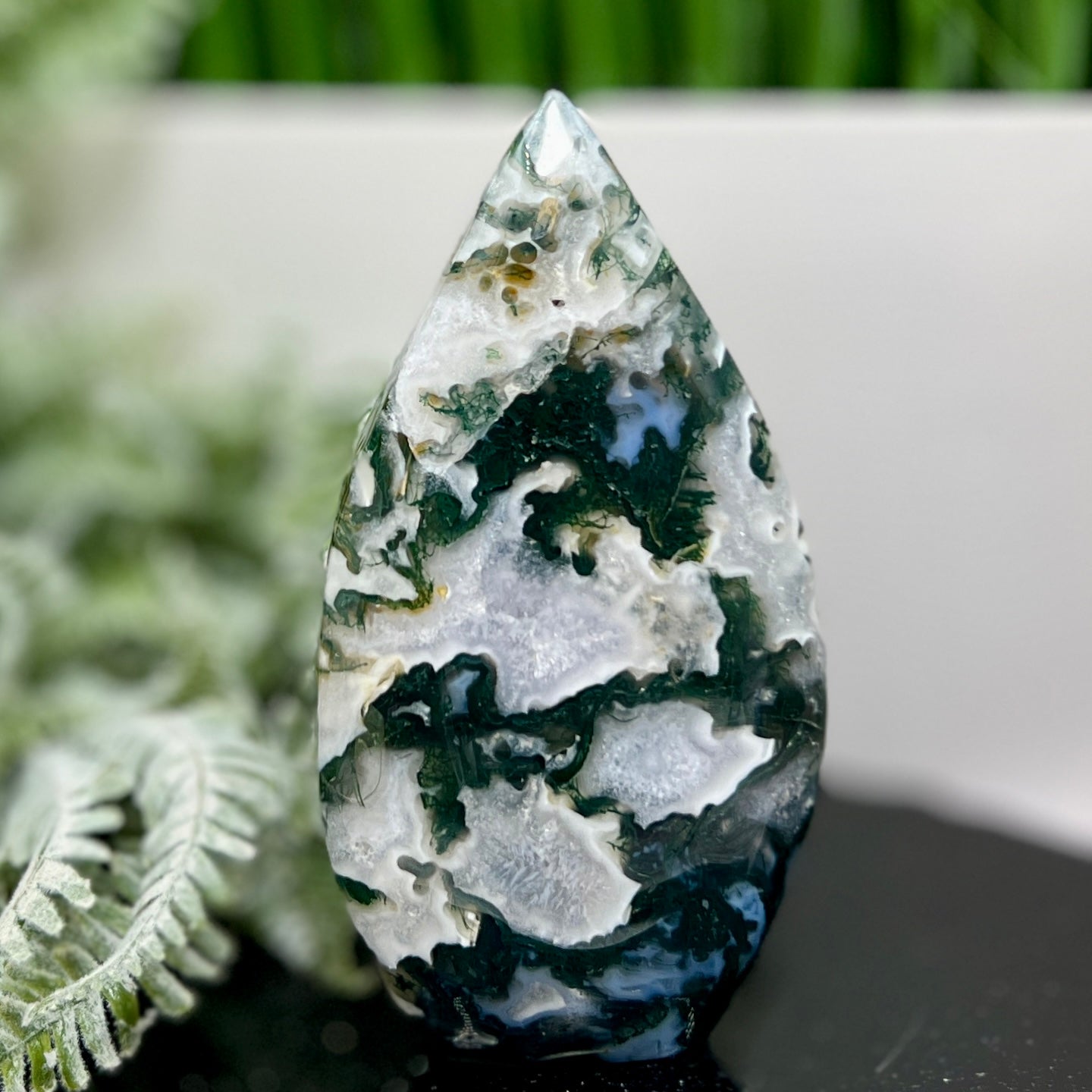 Moss Agate Quartz Druzy Flame High Quality Crystal 364g 129mm