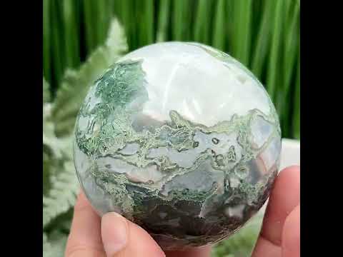 Moss Agate Sphere High Quality Crystal Ball 408g 67mm
