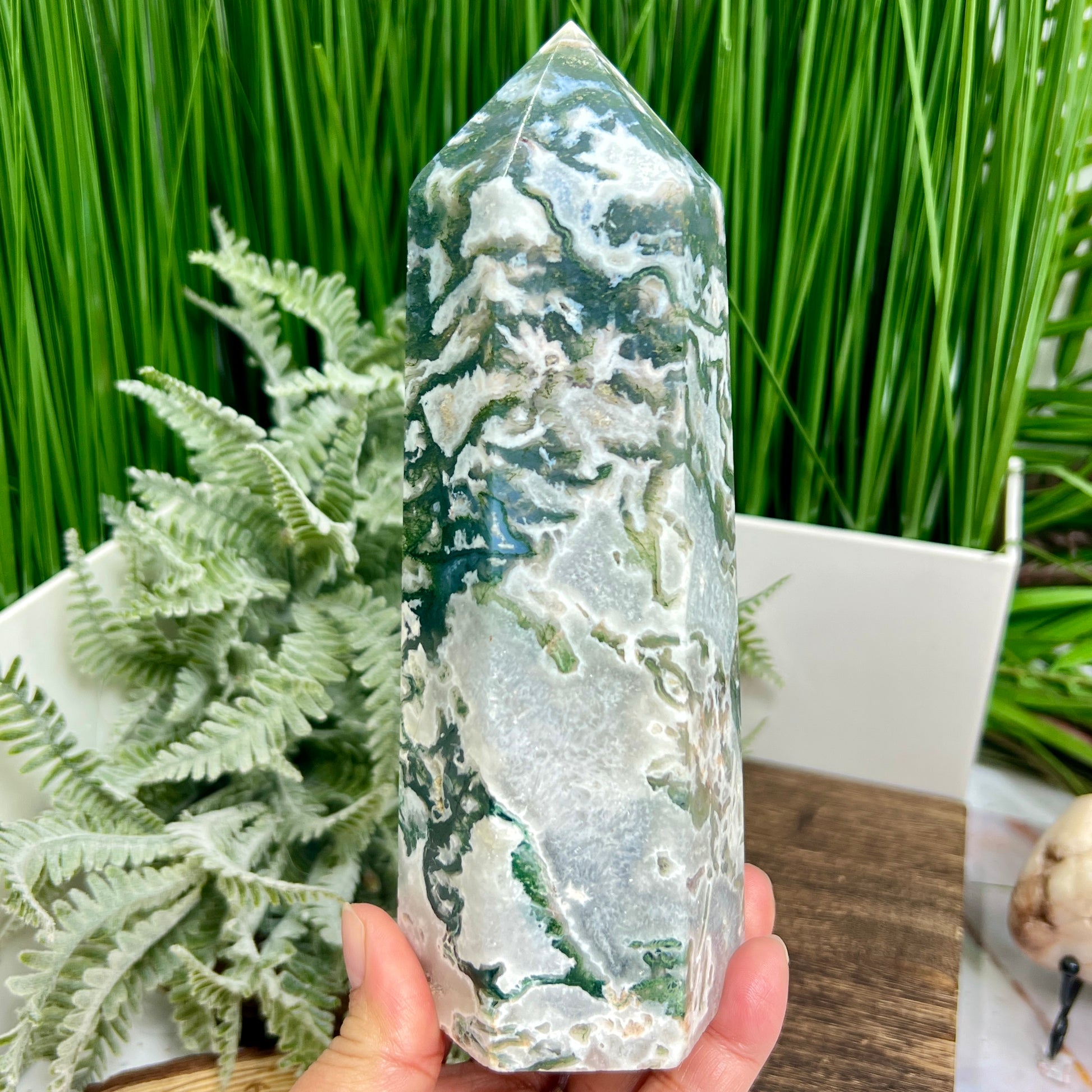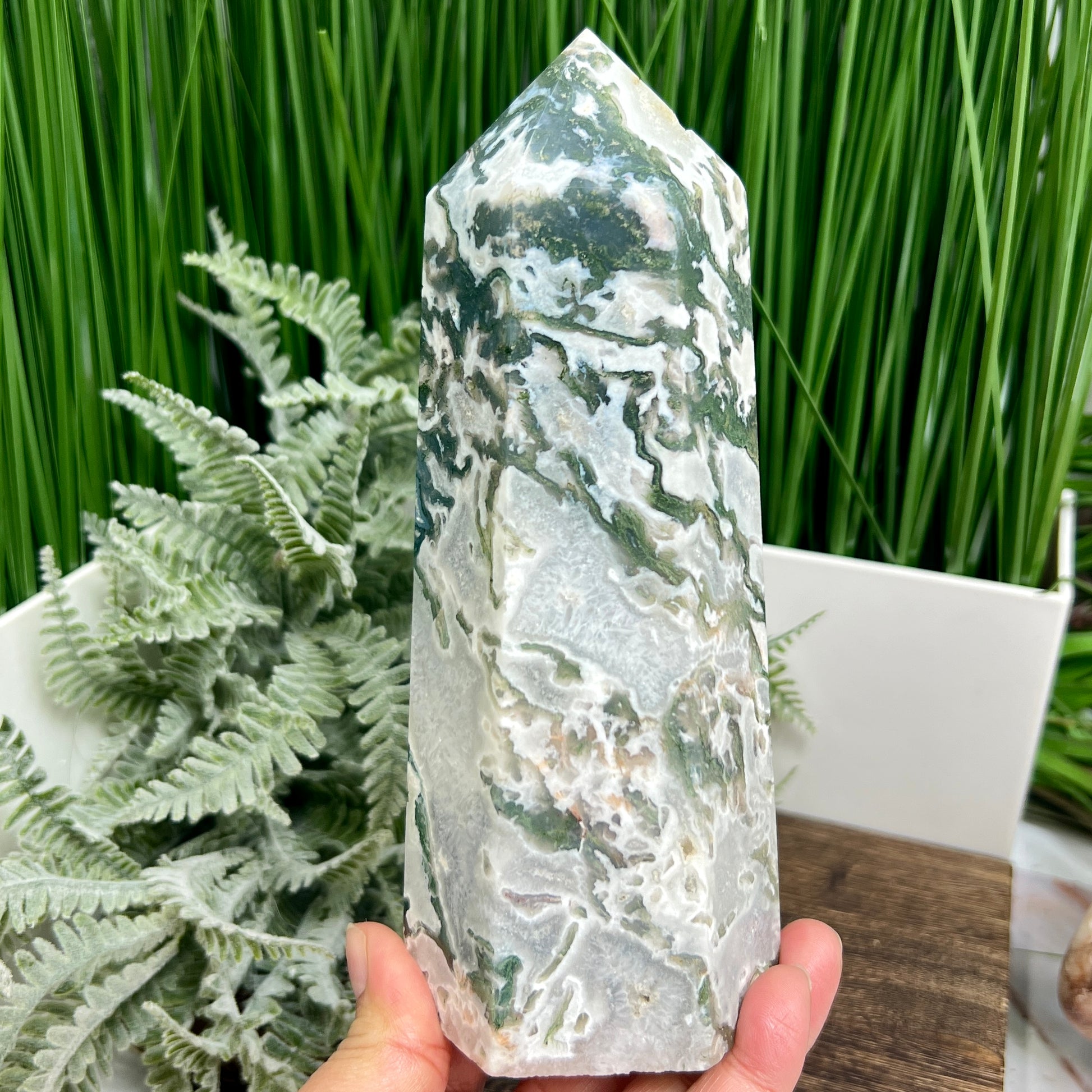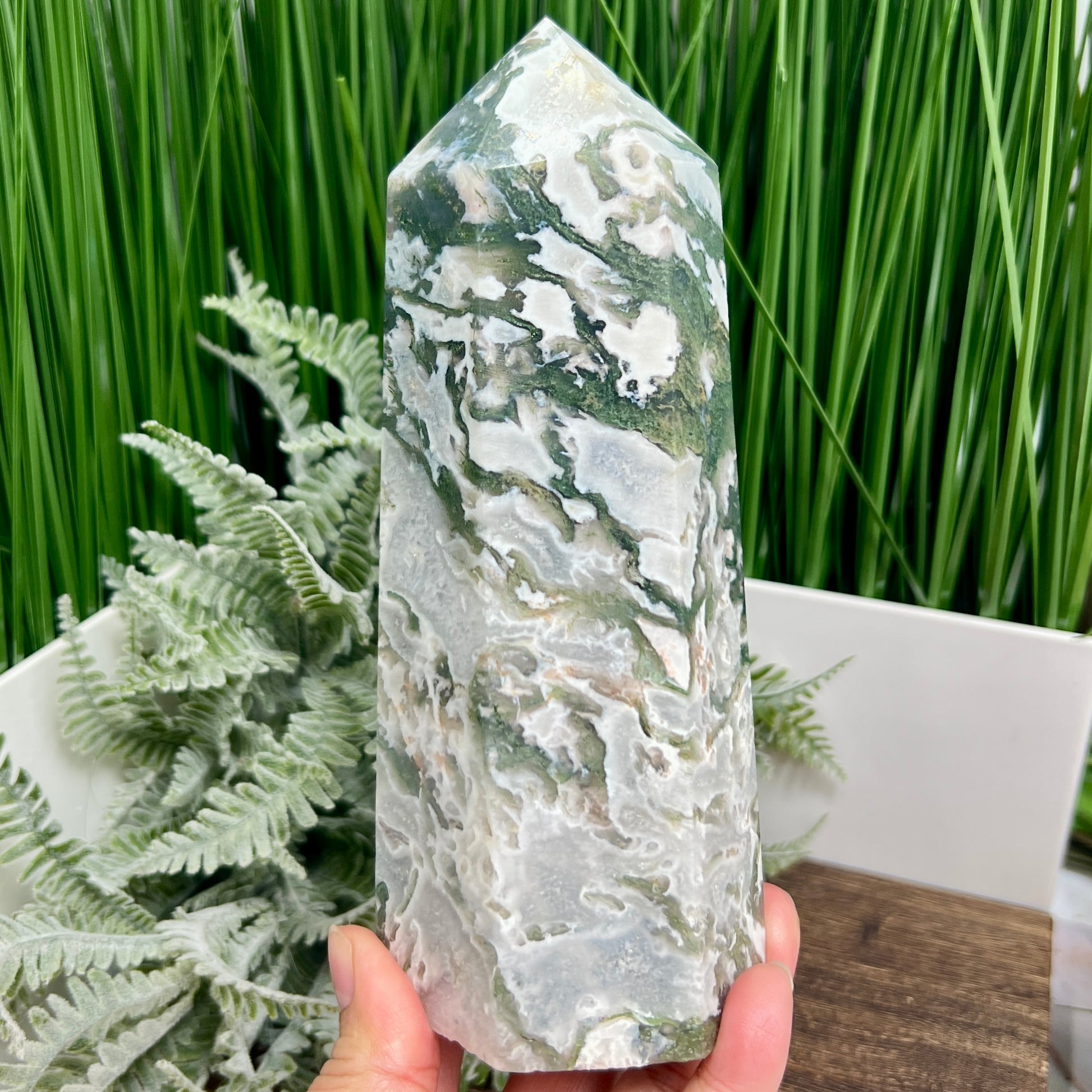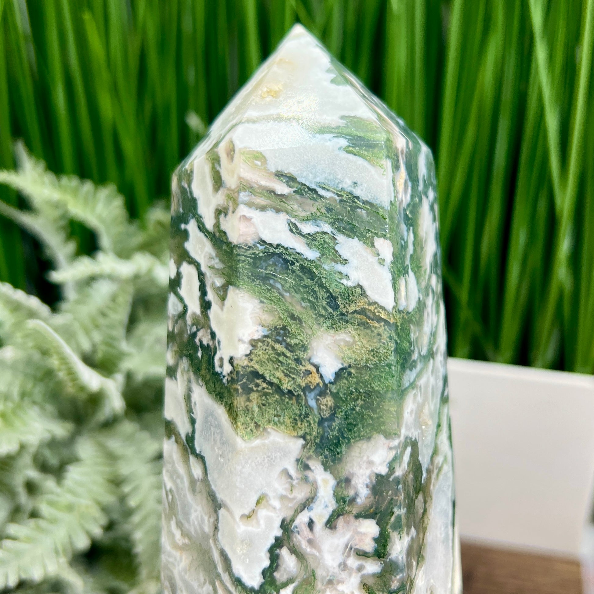 Moss Agate Tower Healing Crystal Generator 1170g 181mm