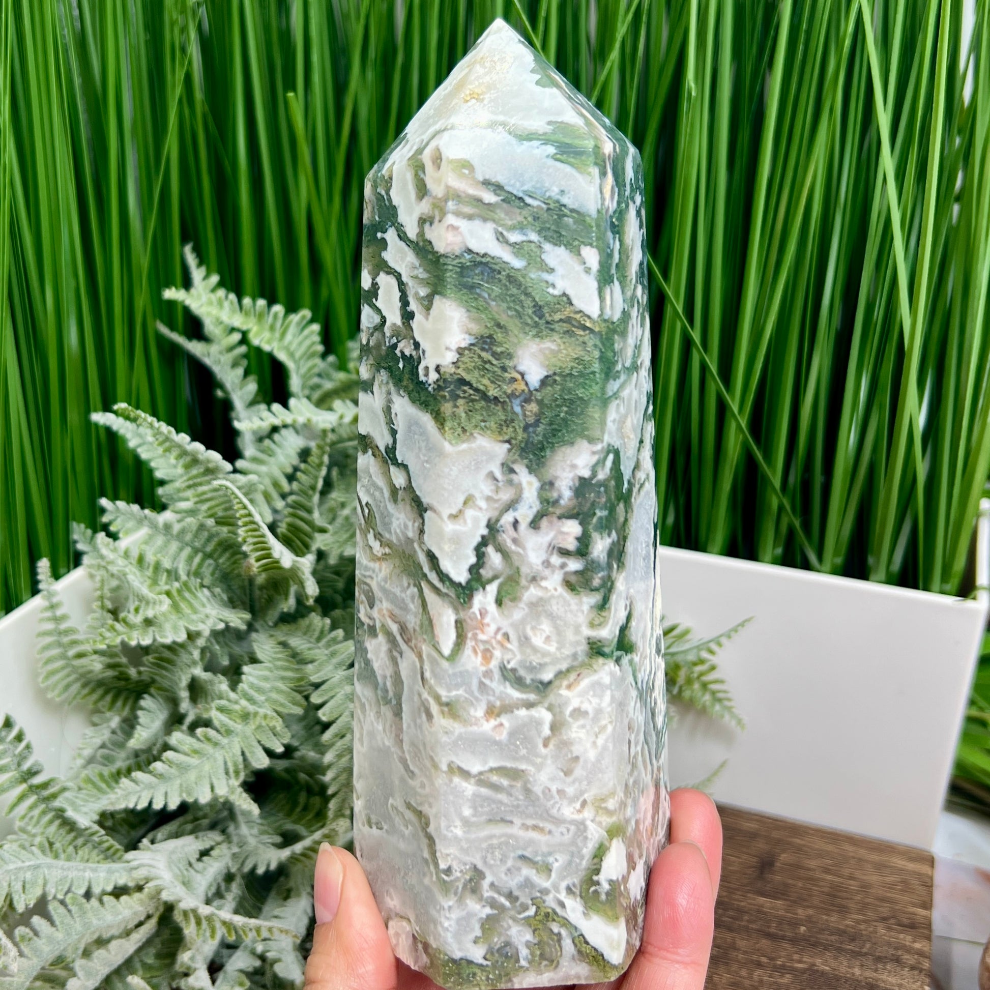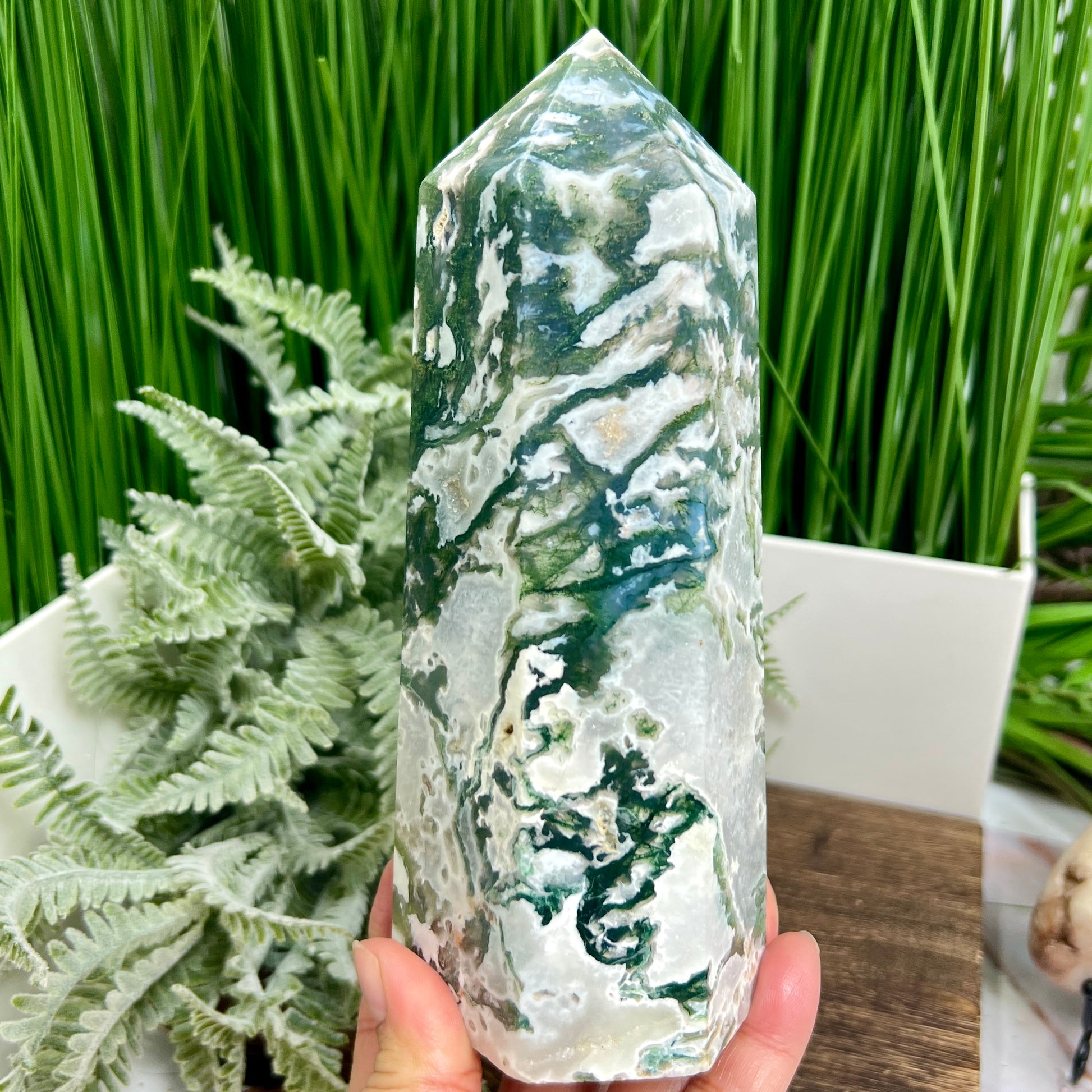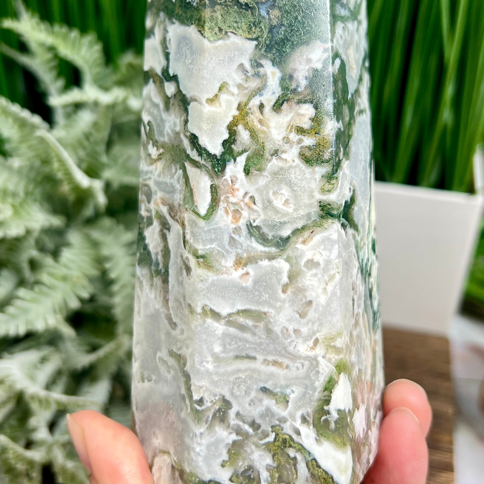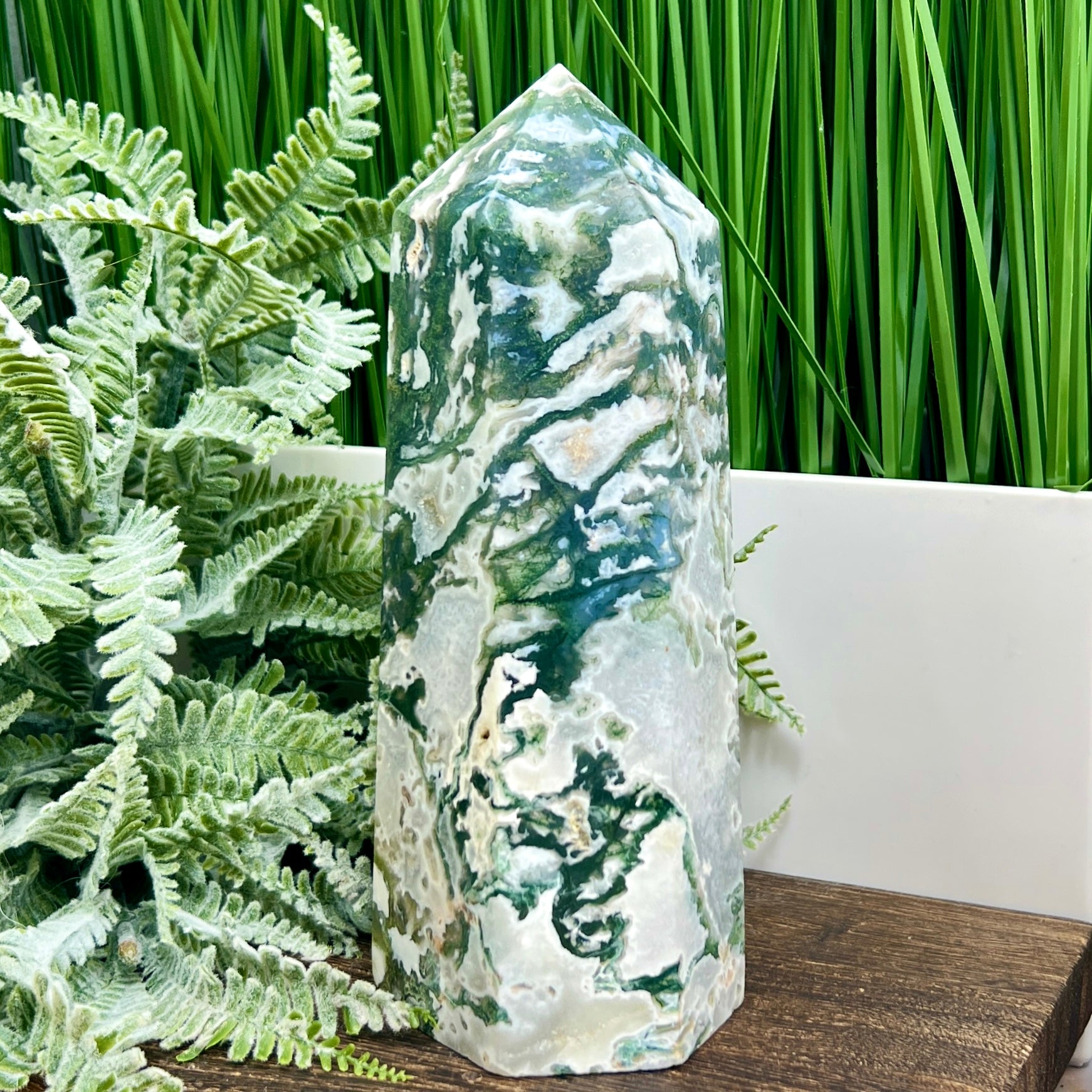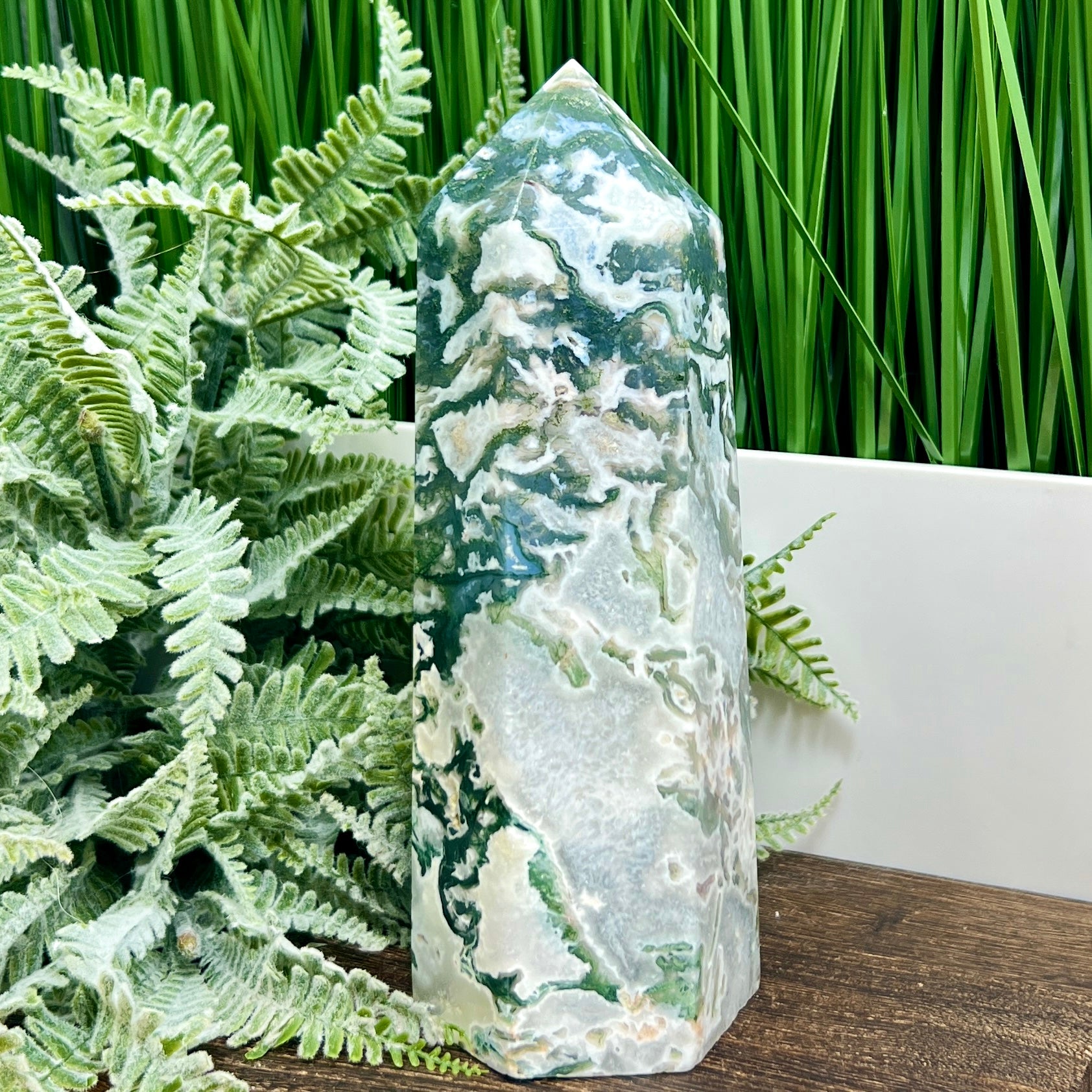 Moss Agate Tower Healing Crystal Generator 1170g 181mm