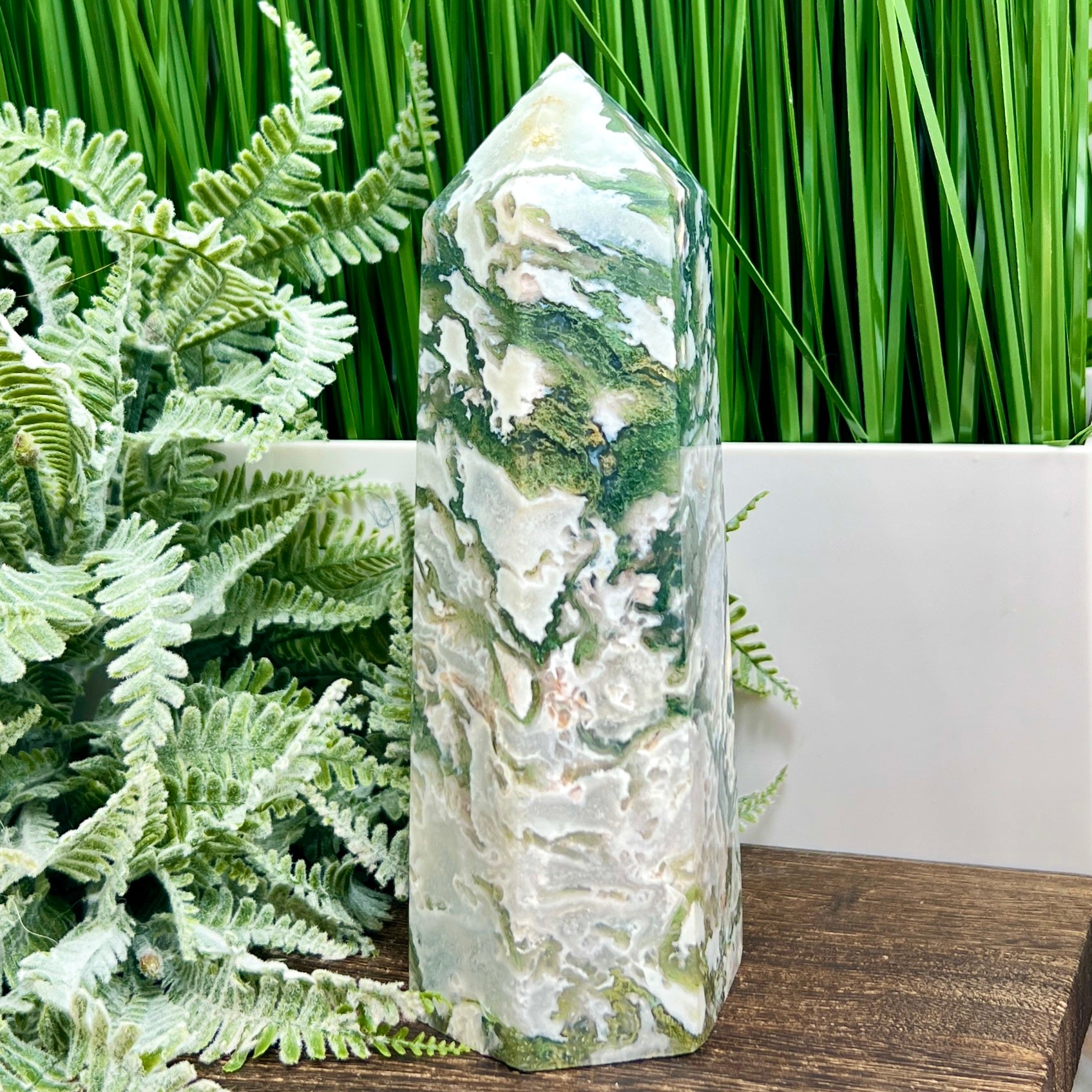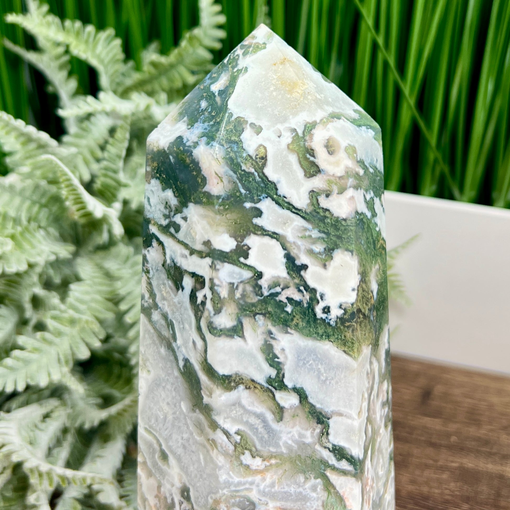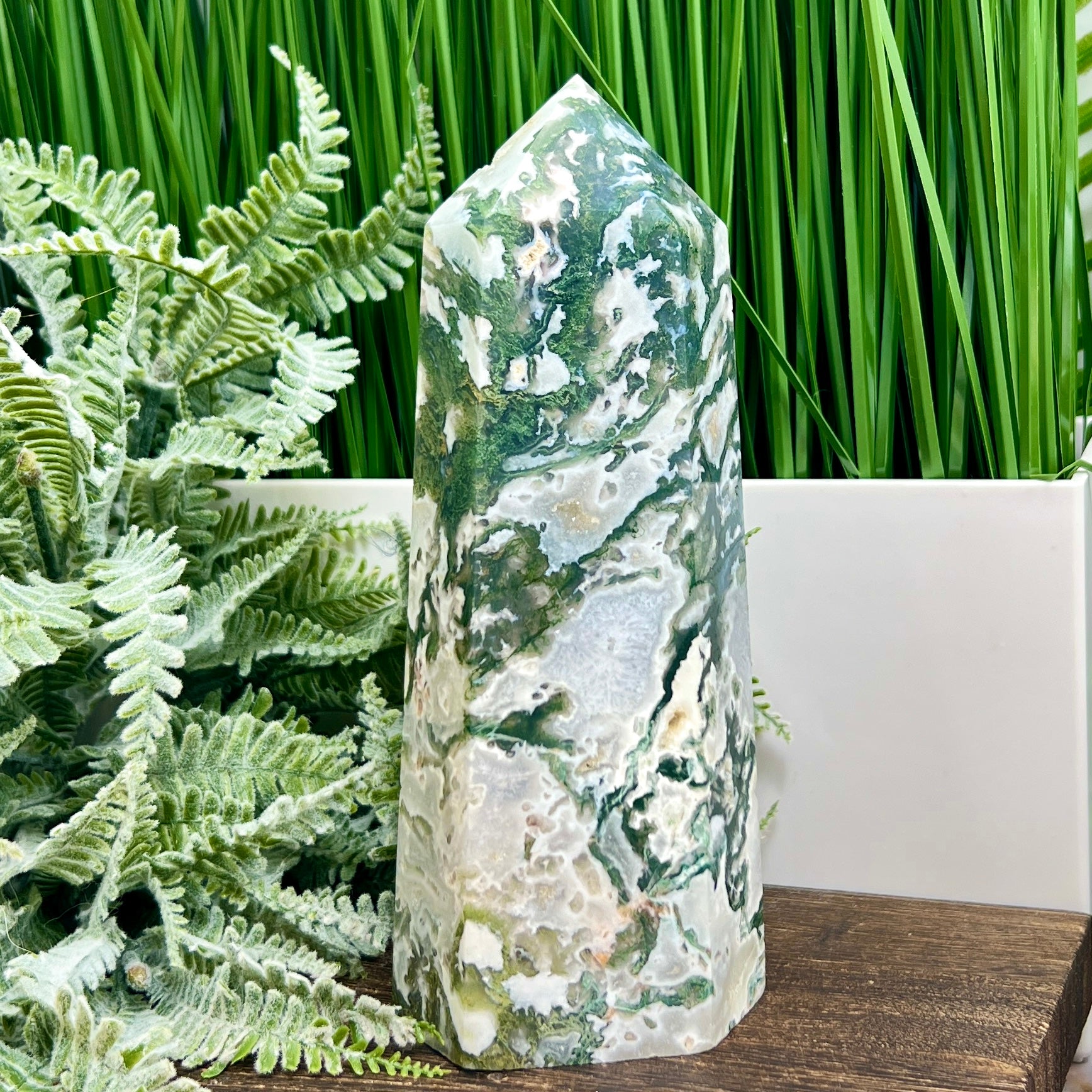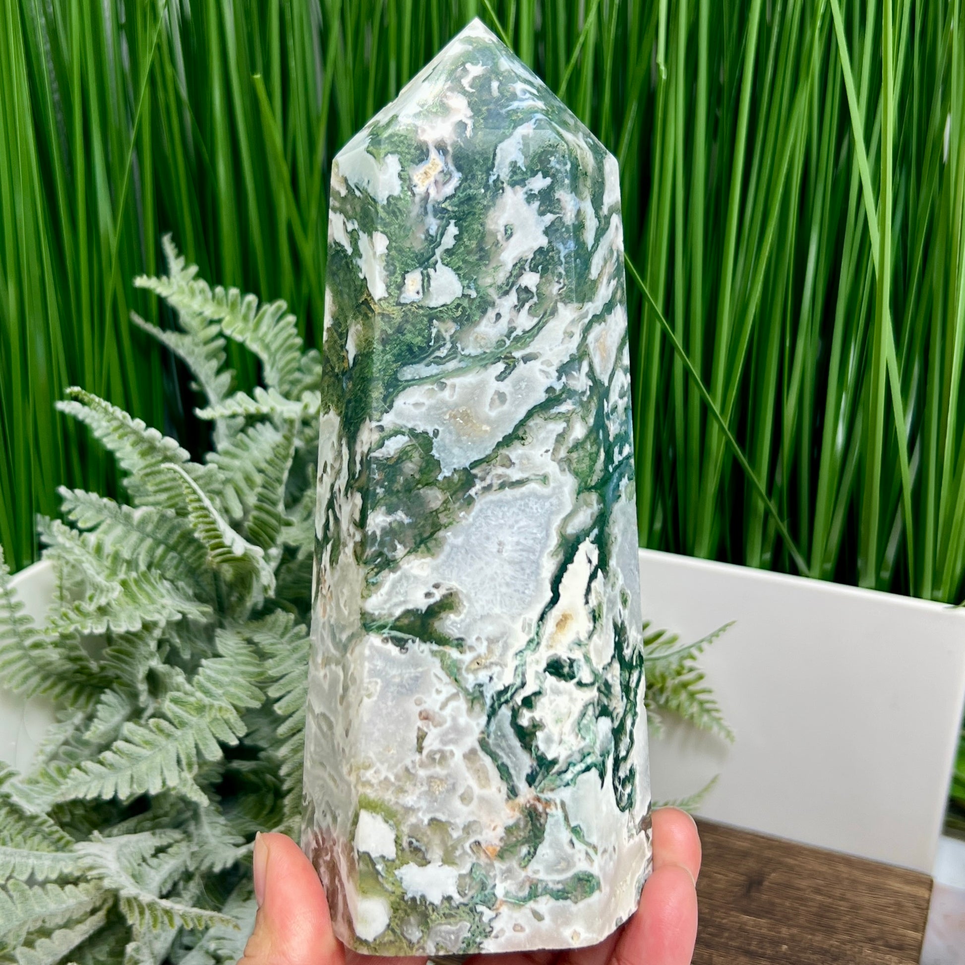 Moss Agate Tower Healing Crystal Generator 1170g 181mm