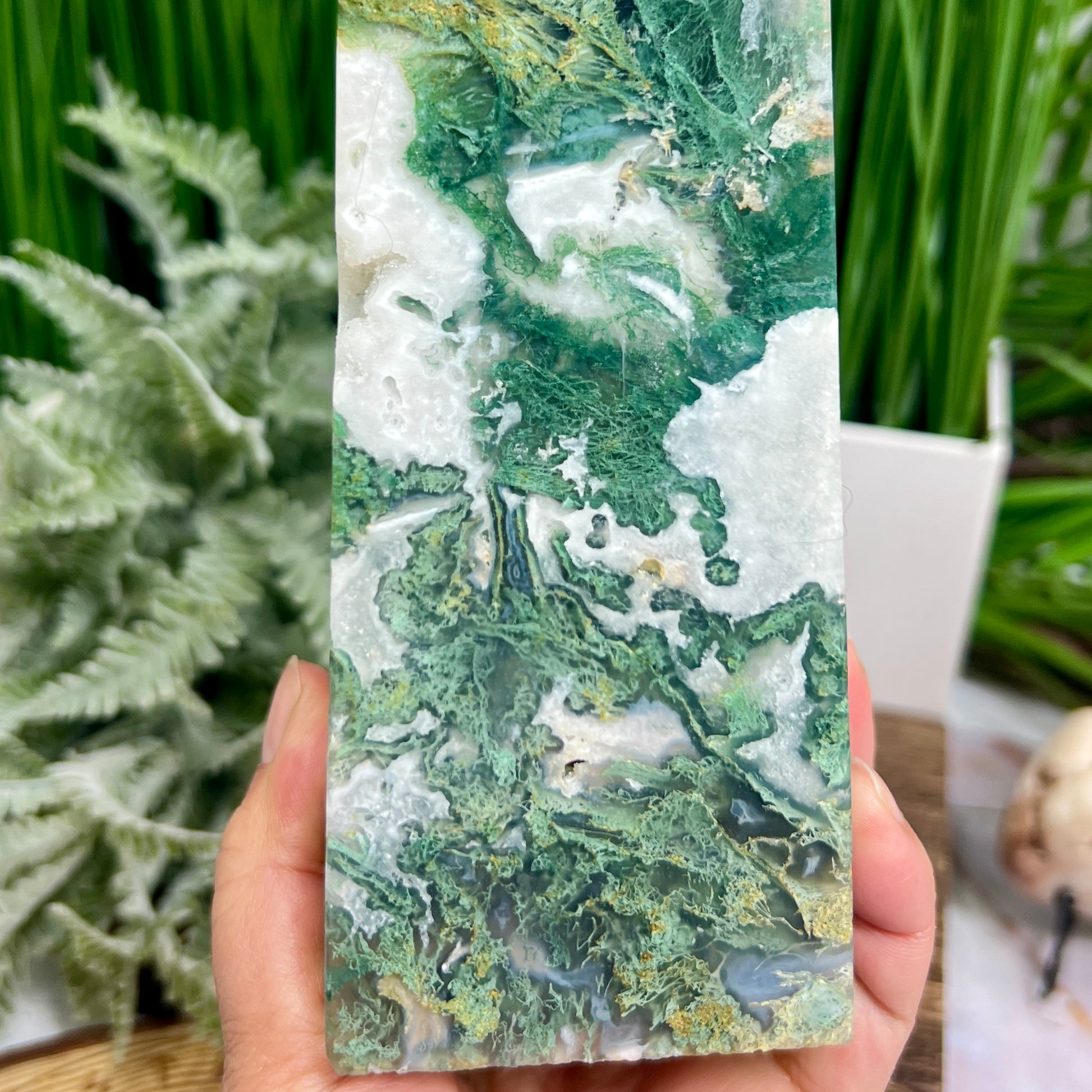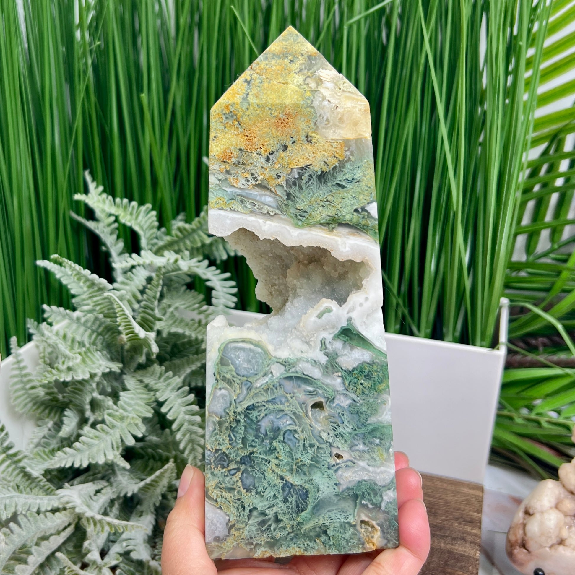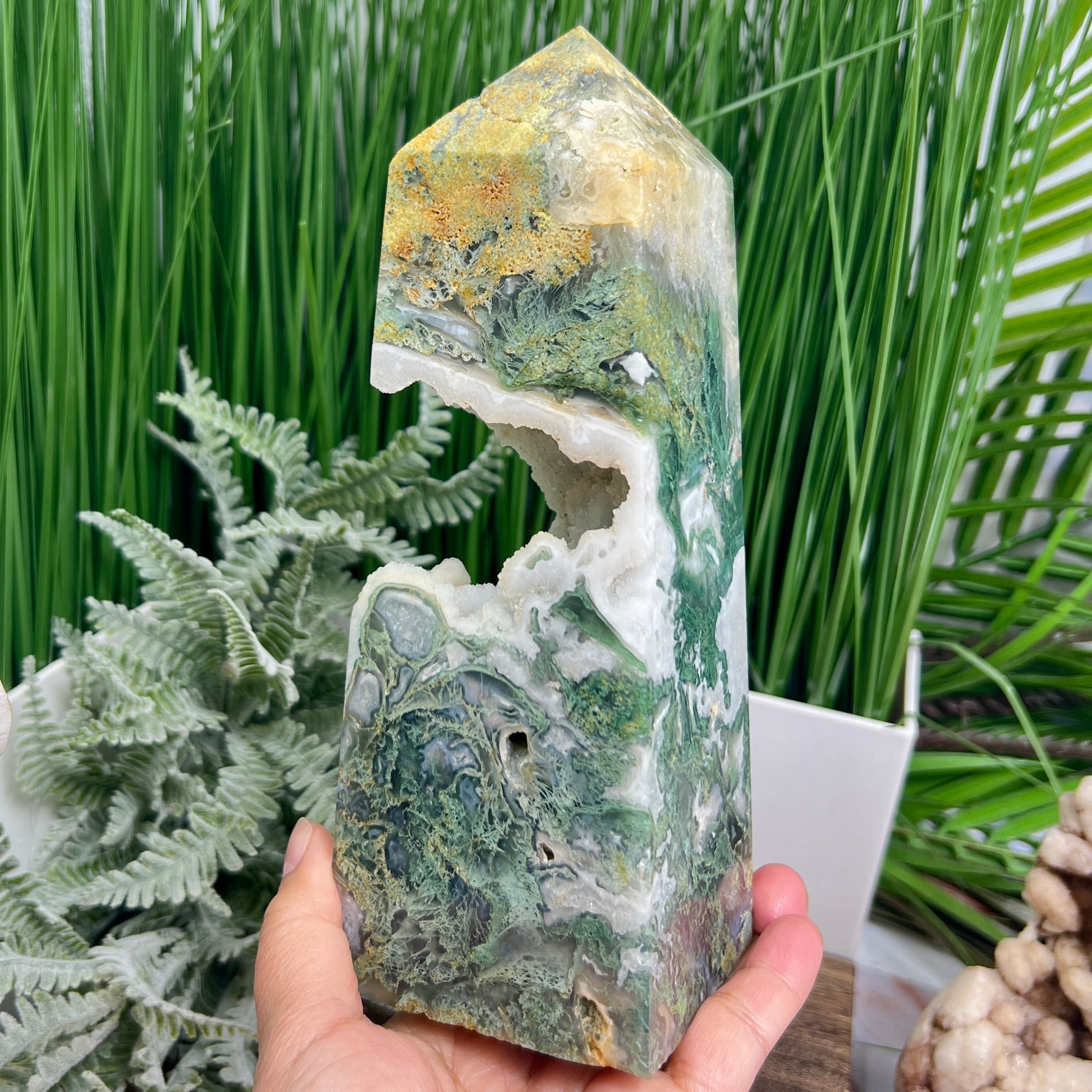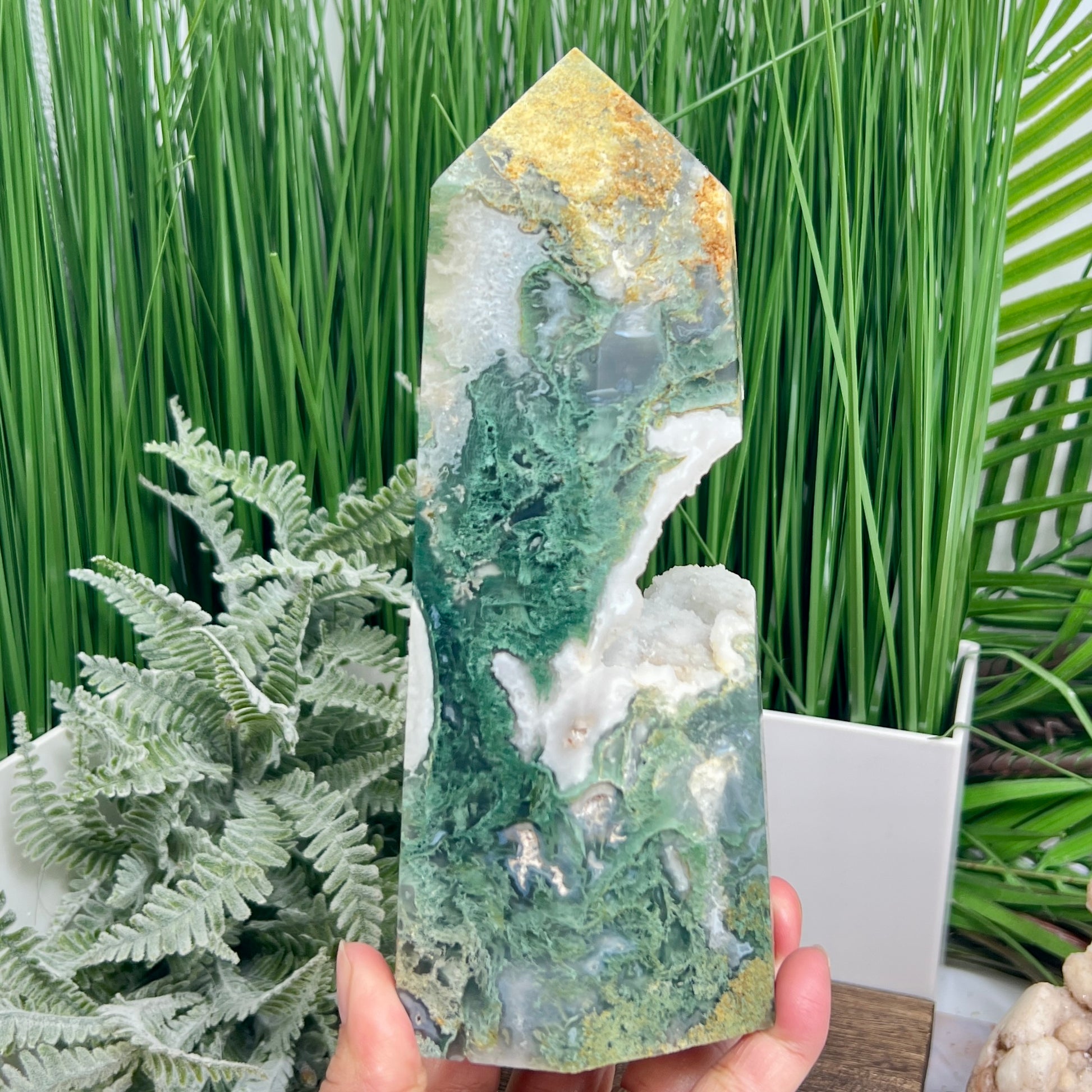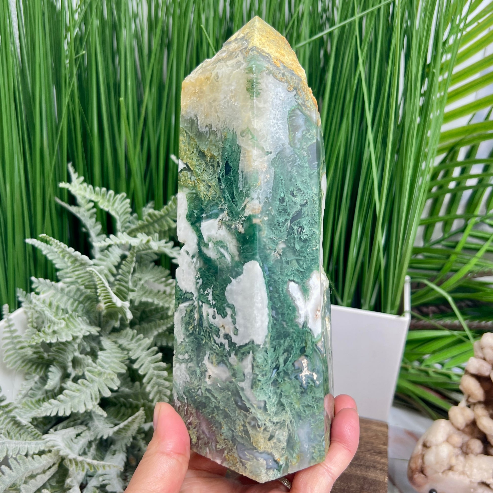 Moss Agate Tower Healing Crystal Generator 1354g 199mm