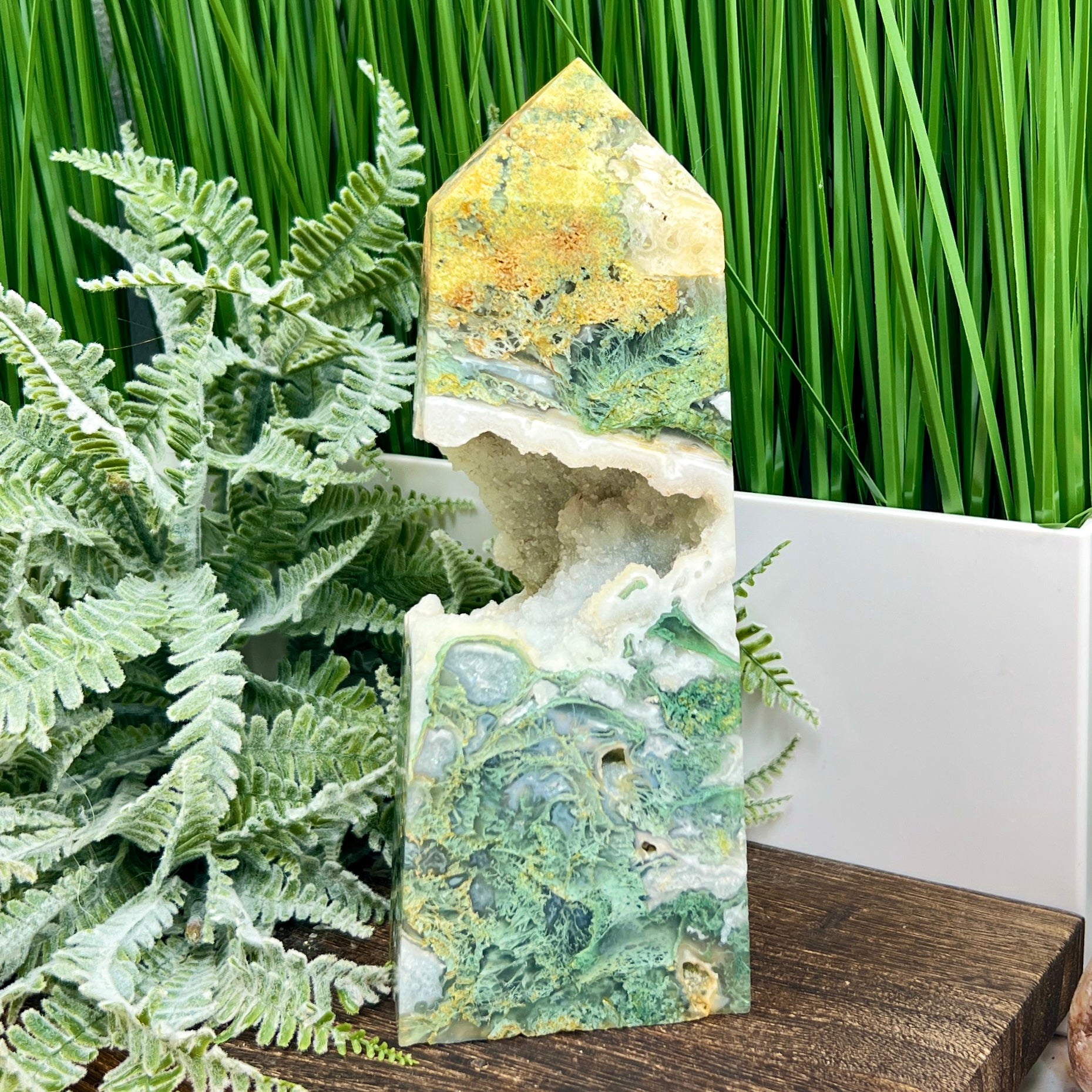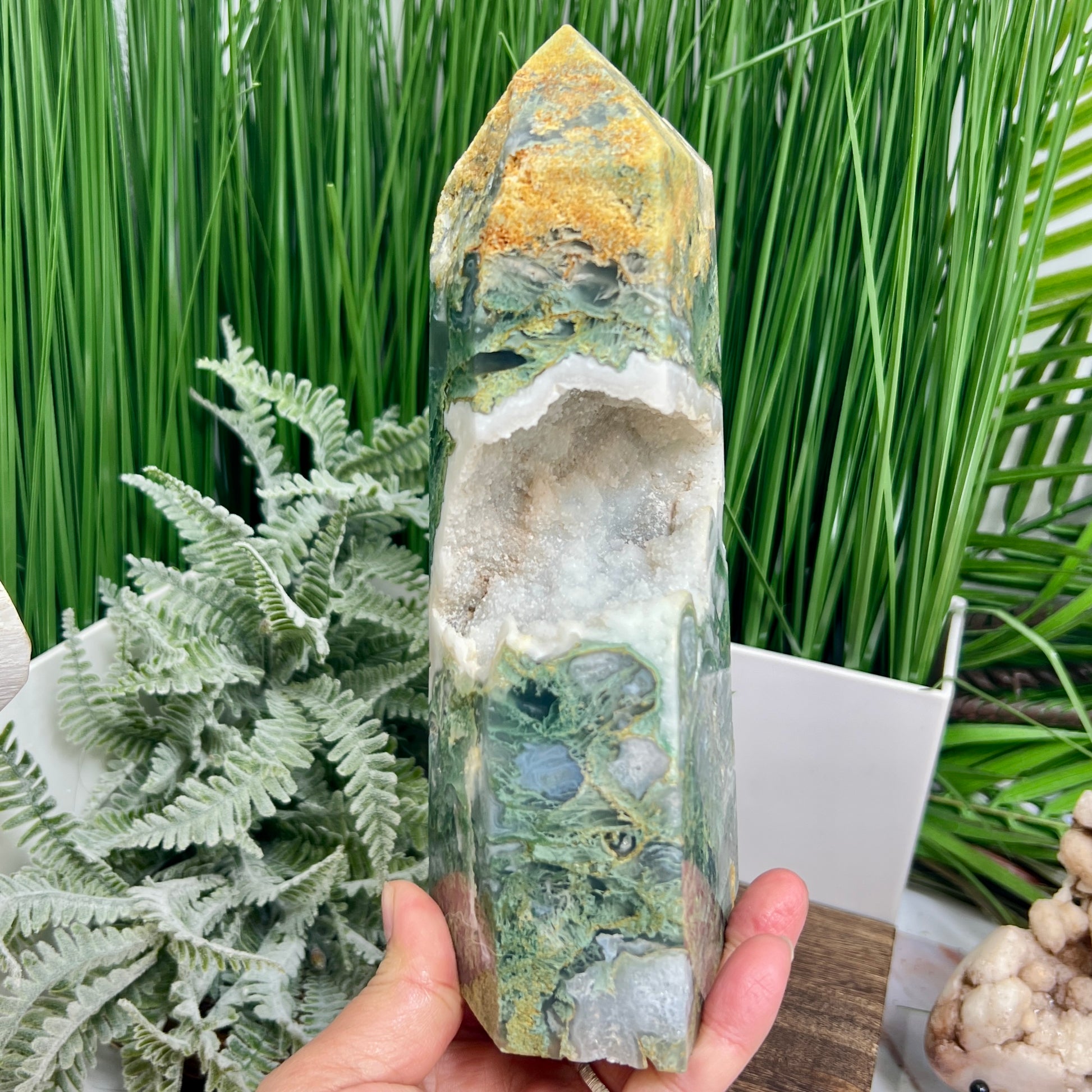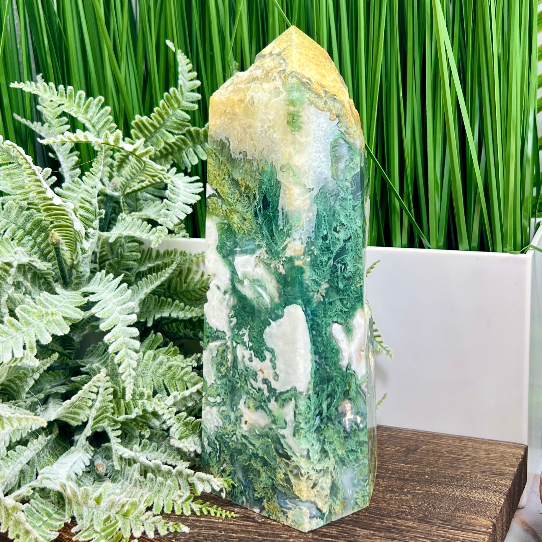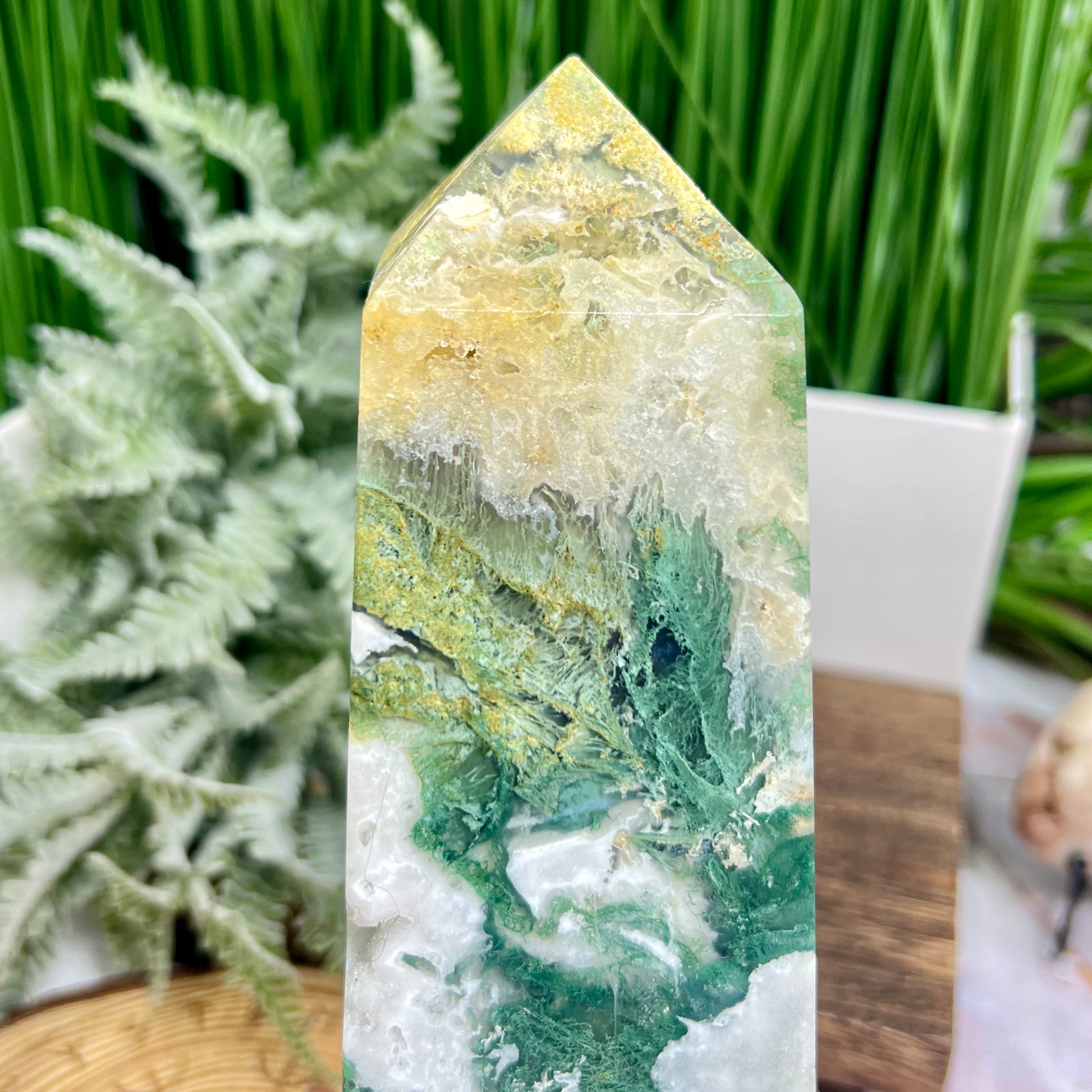 Moss Agate Tower Healing Crystal Generator 1354g 199mm