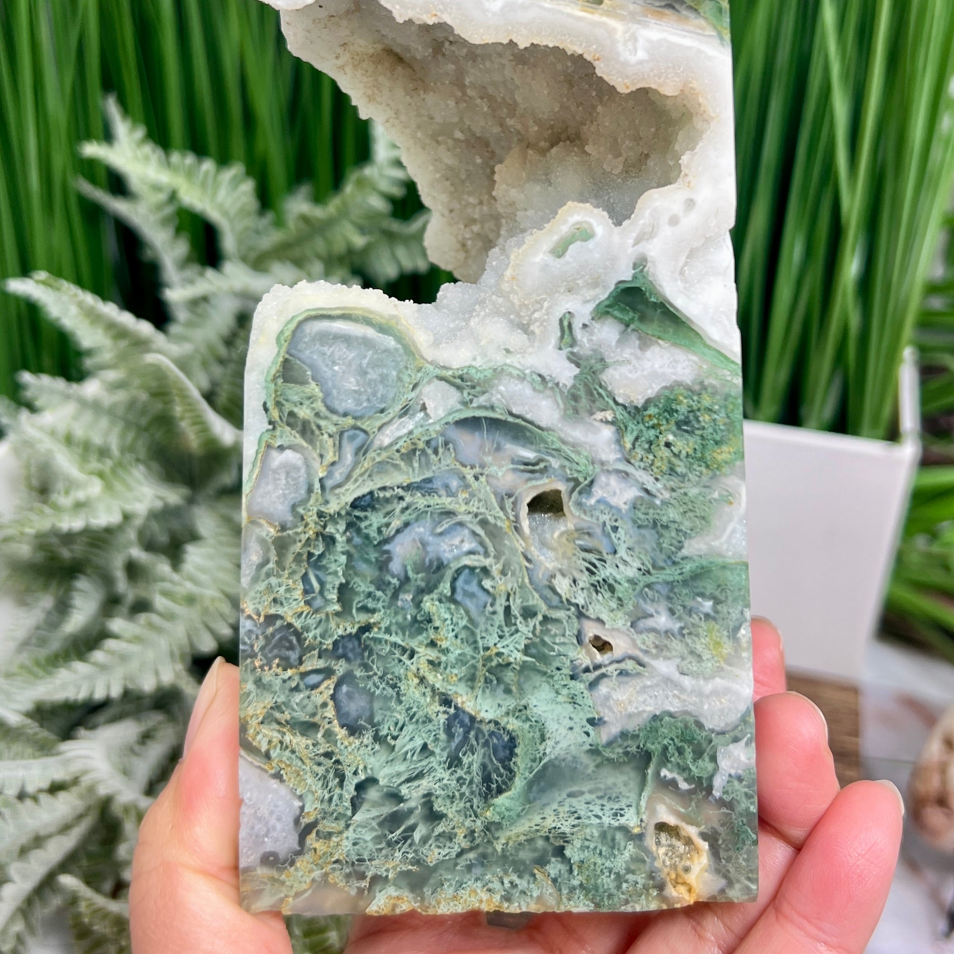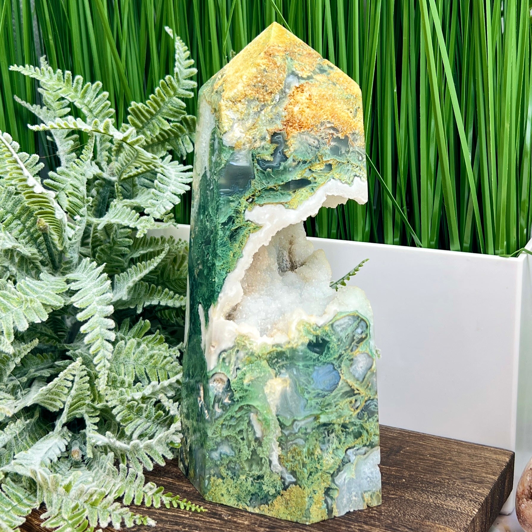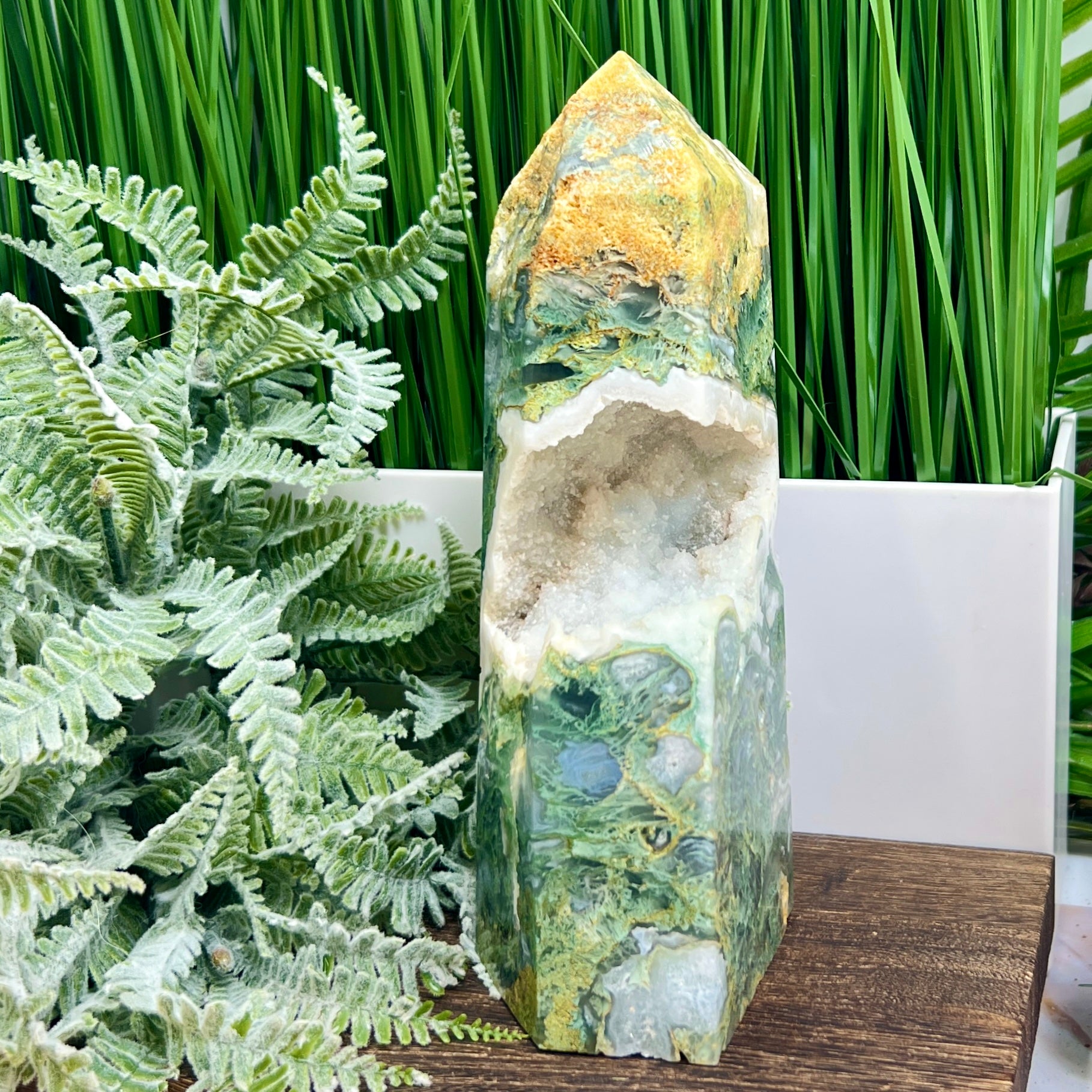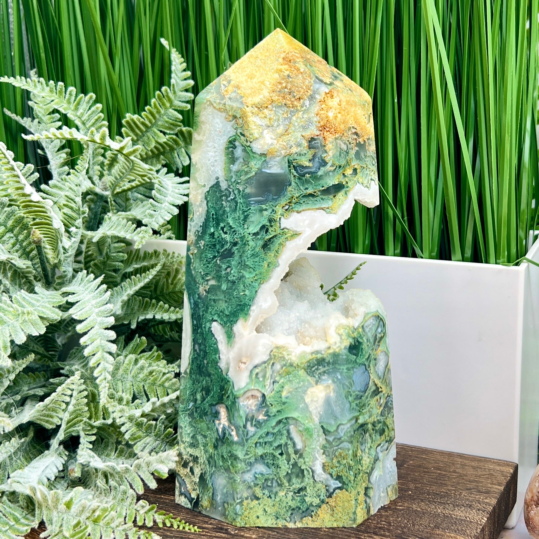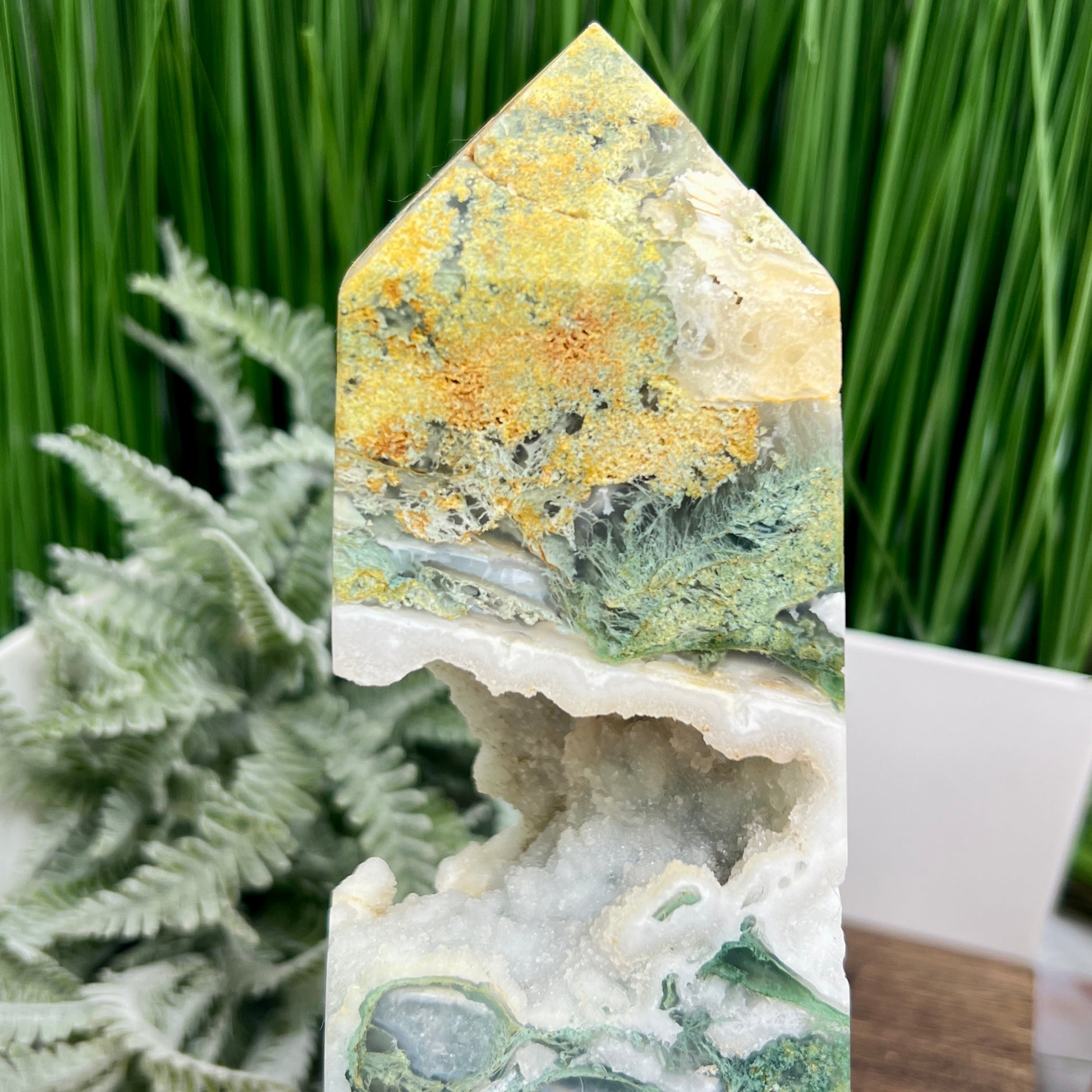 Moss Agate Tower Healing Crystal Generator 1354g 199mm