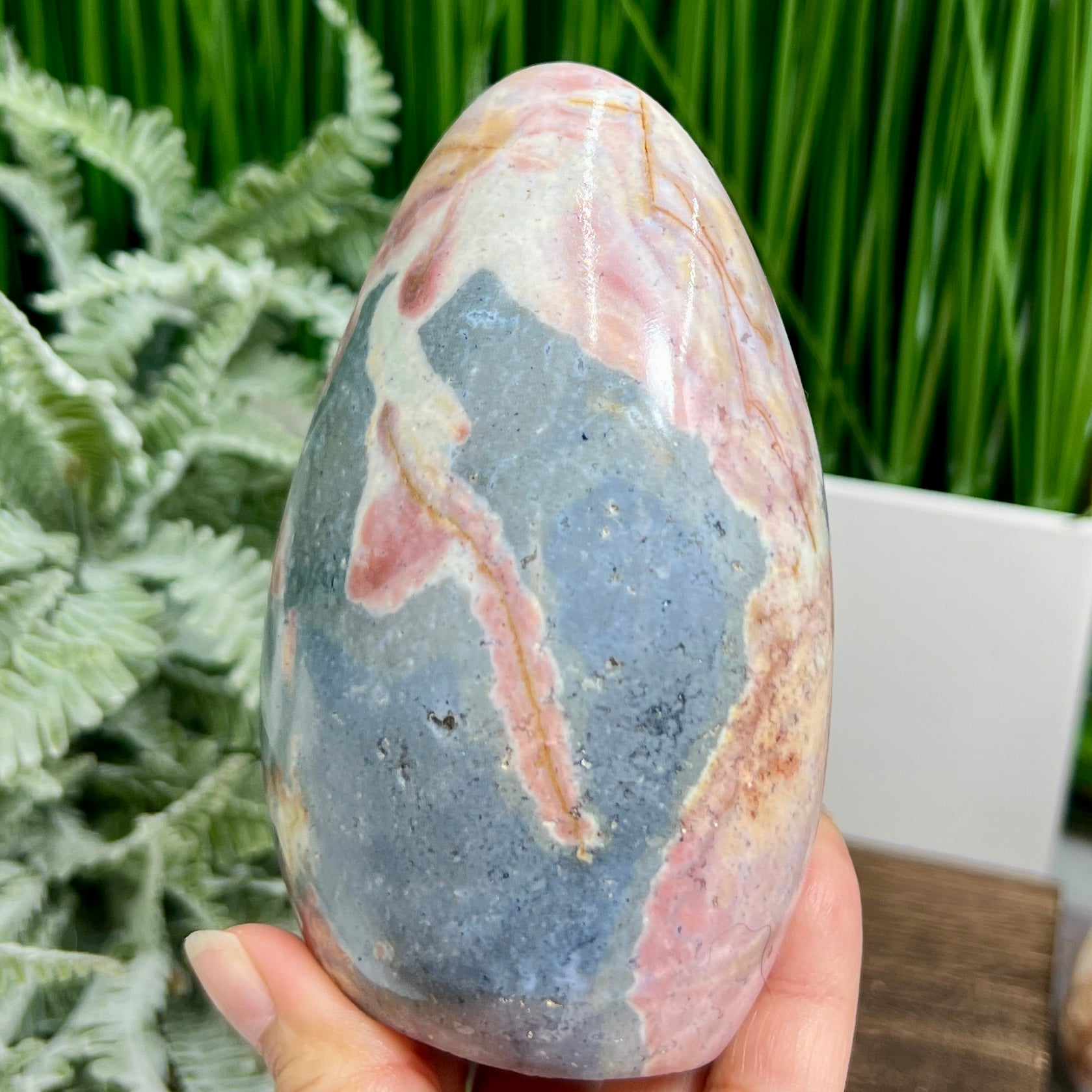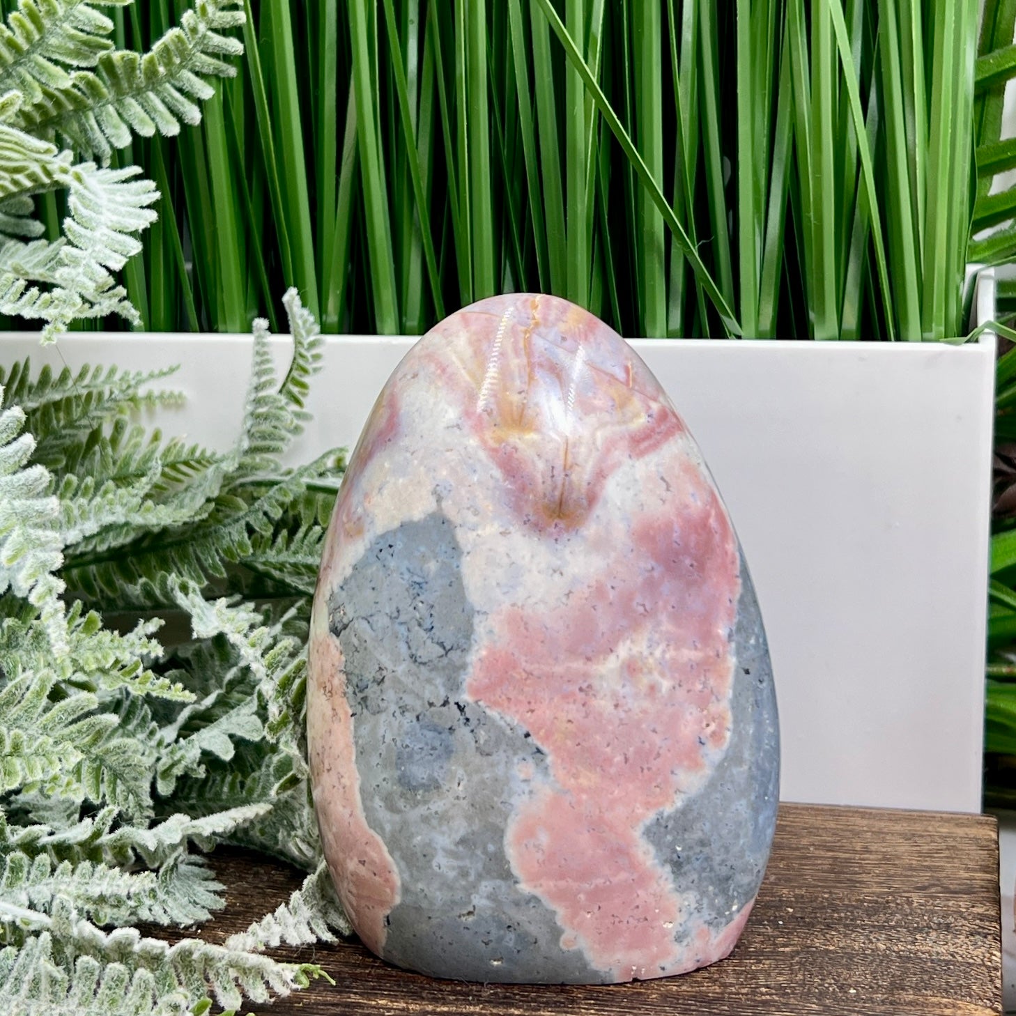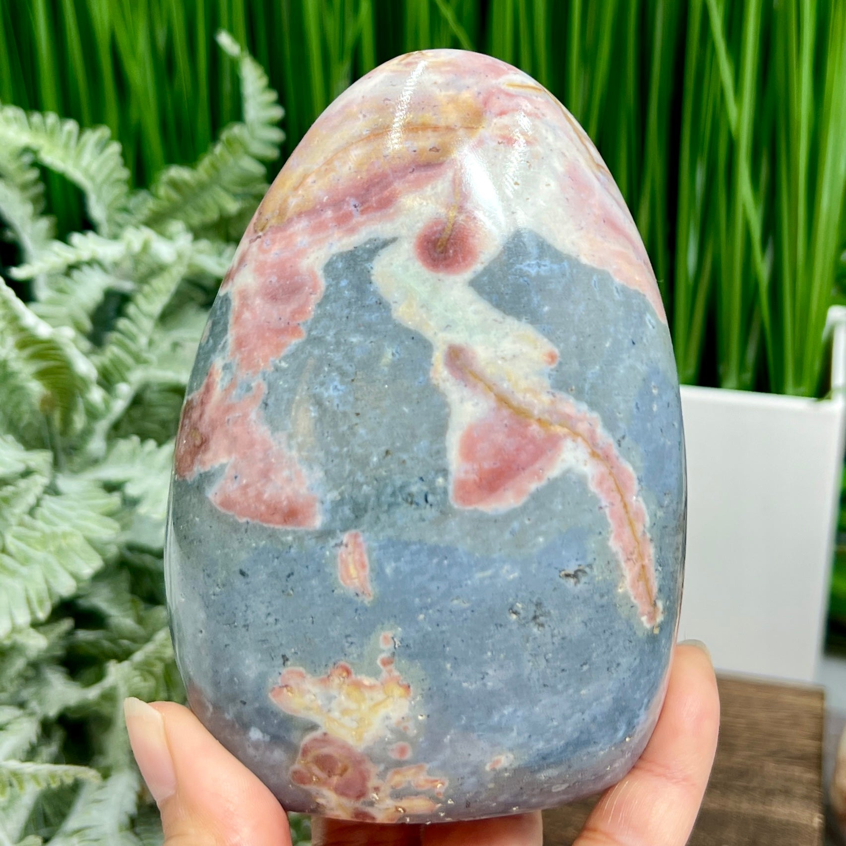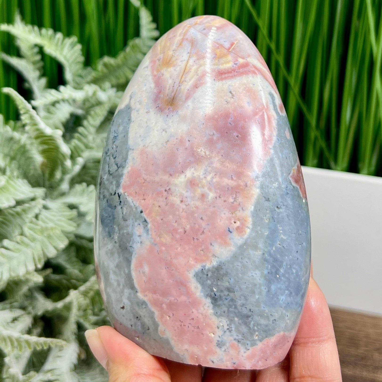 Ocean Sea Jasper Pink Free Form Flame Crystal Carving 722g