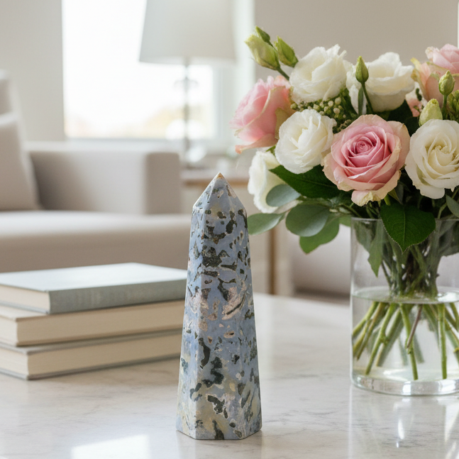 - Heart Chakra (Green Ocean Jasper): The green tones of Ocean Jasper resonate with the Heart Chakra, promoting love, compassion, and emotional healing.