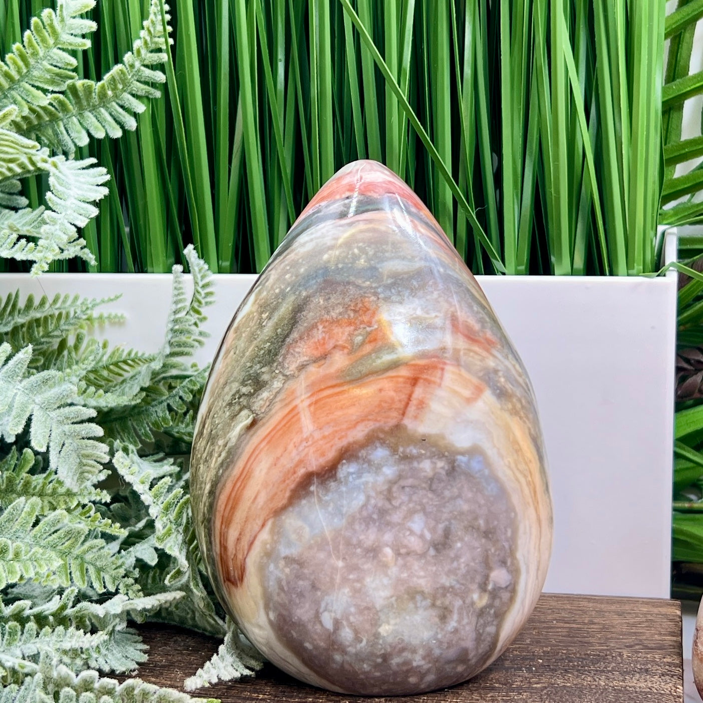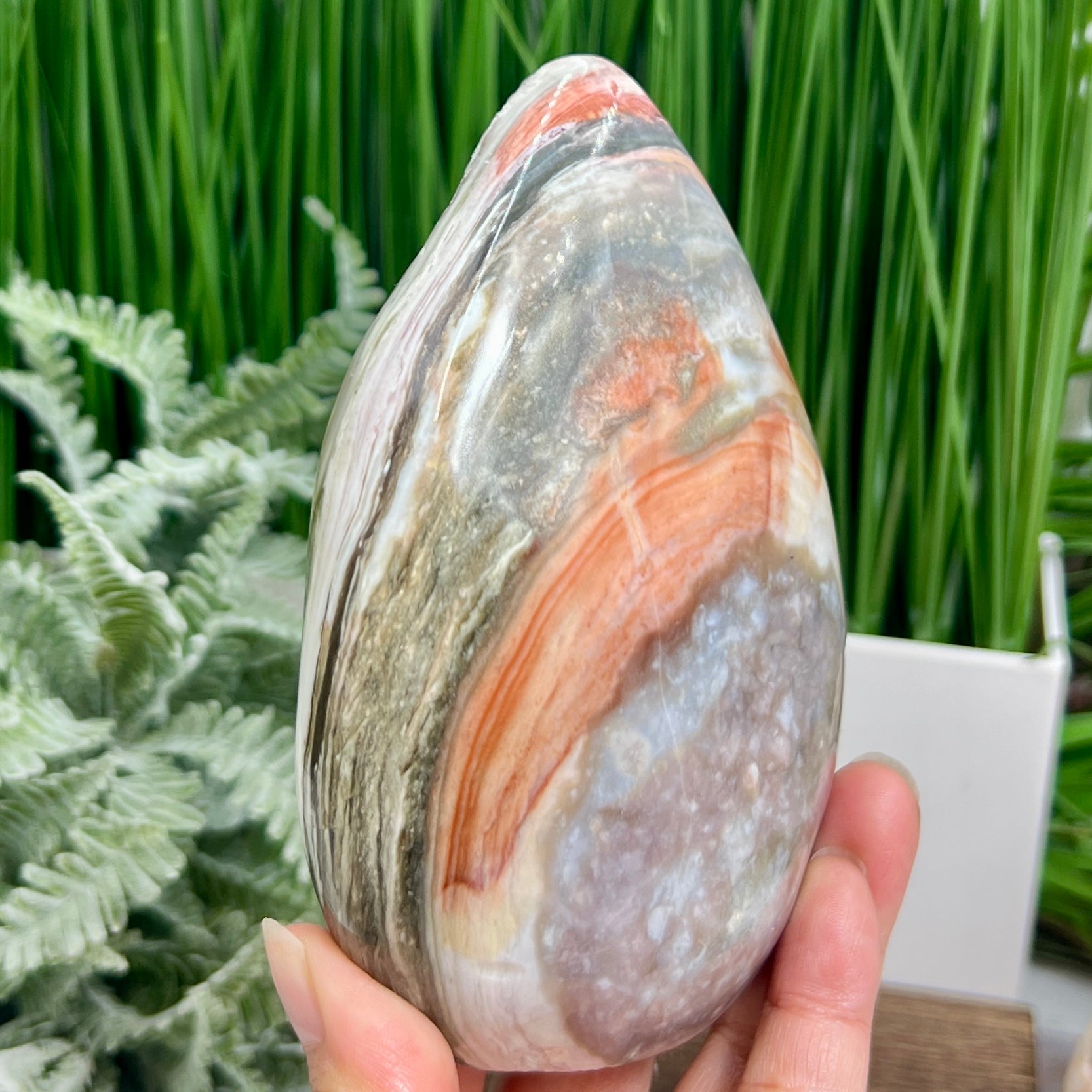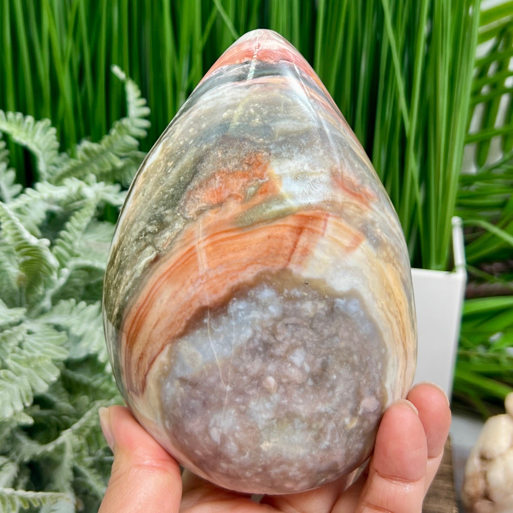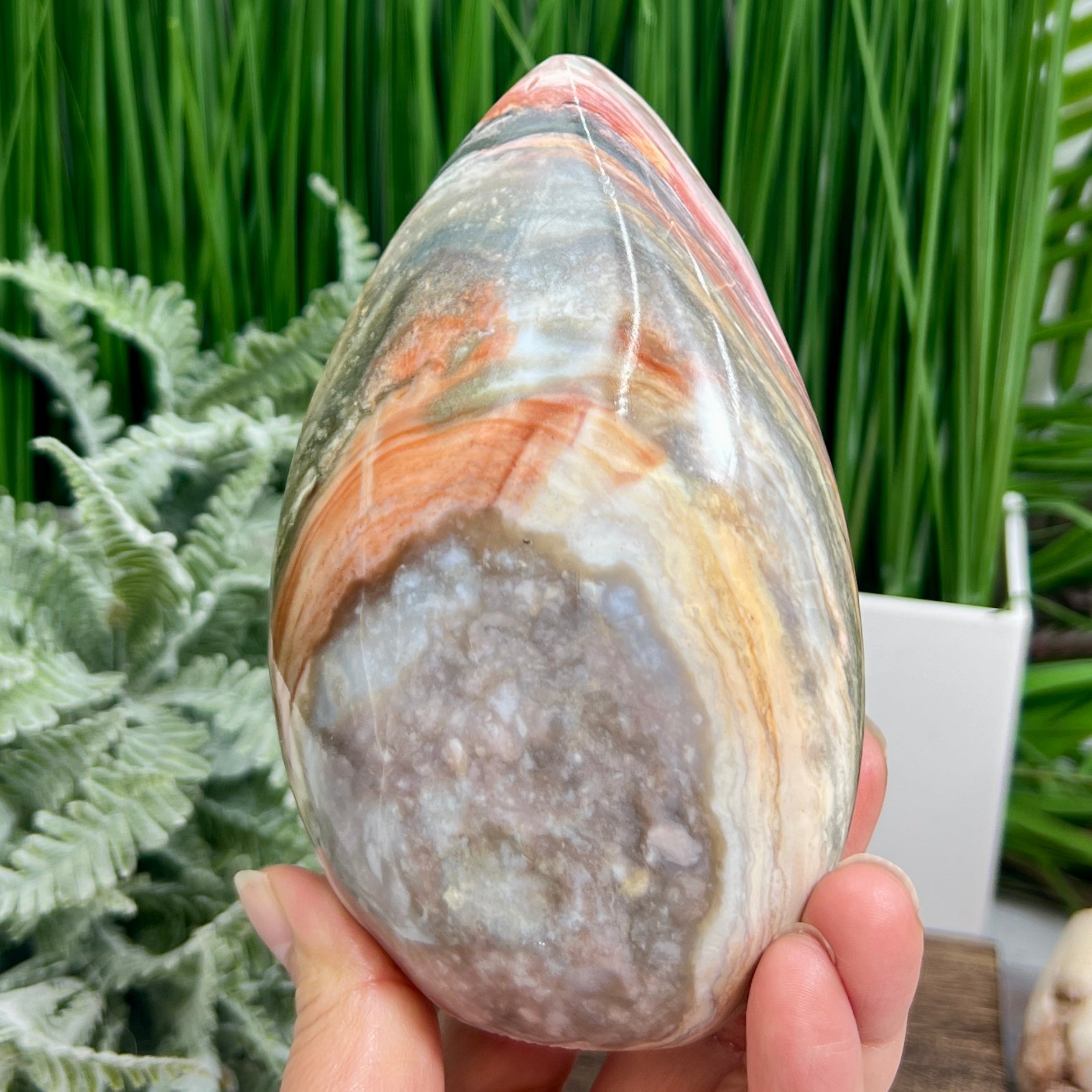 Ocean Sea Jasper with Quartz Free Form Flame Crystal Carving 826g