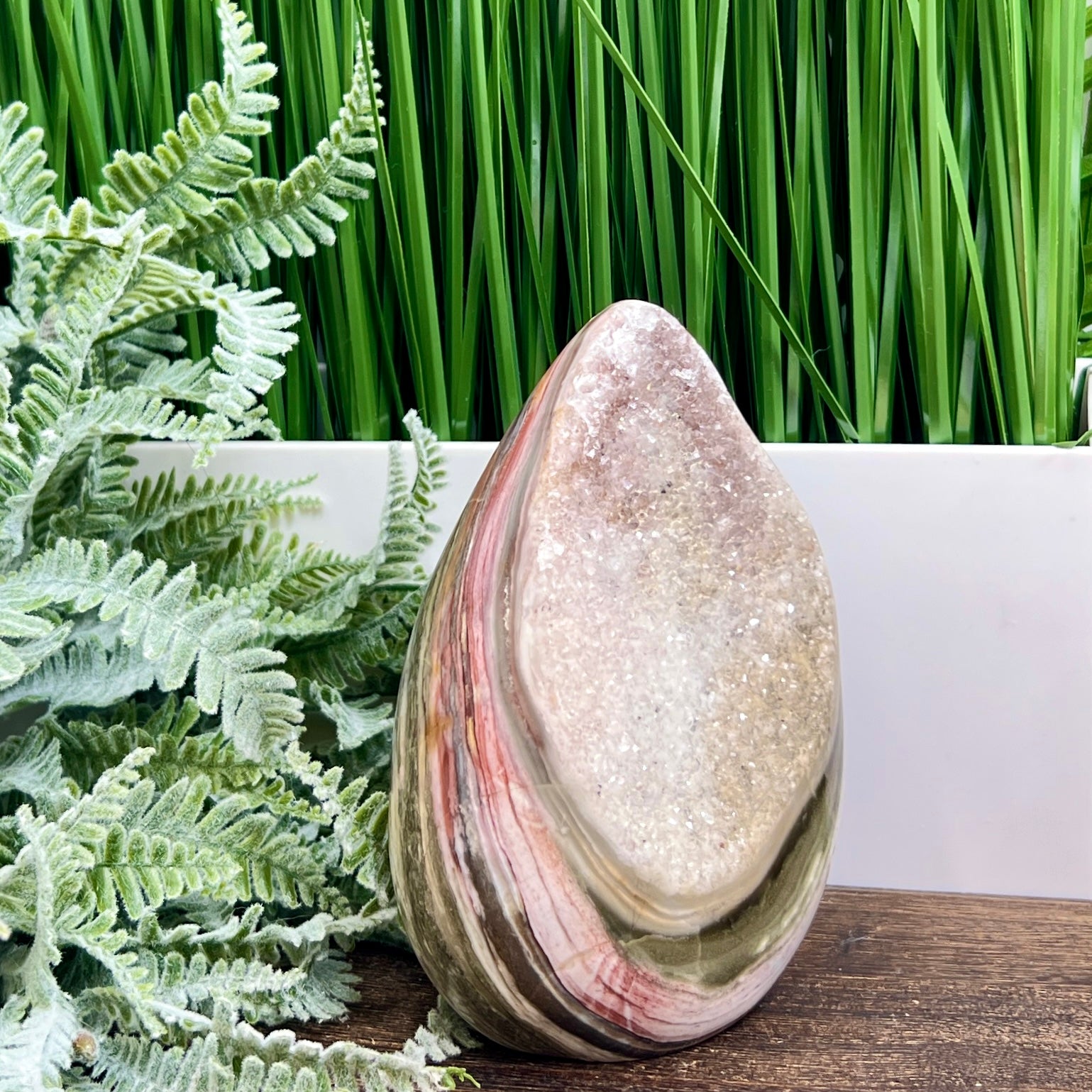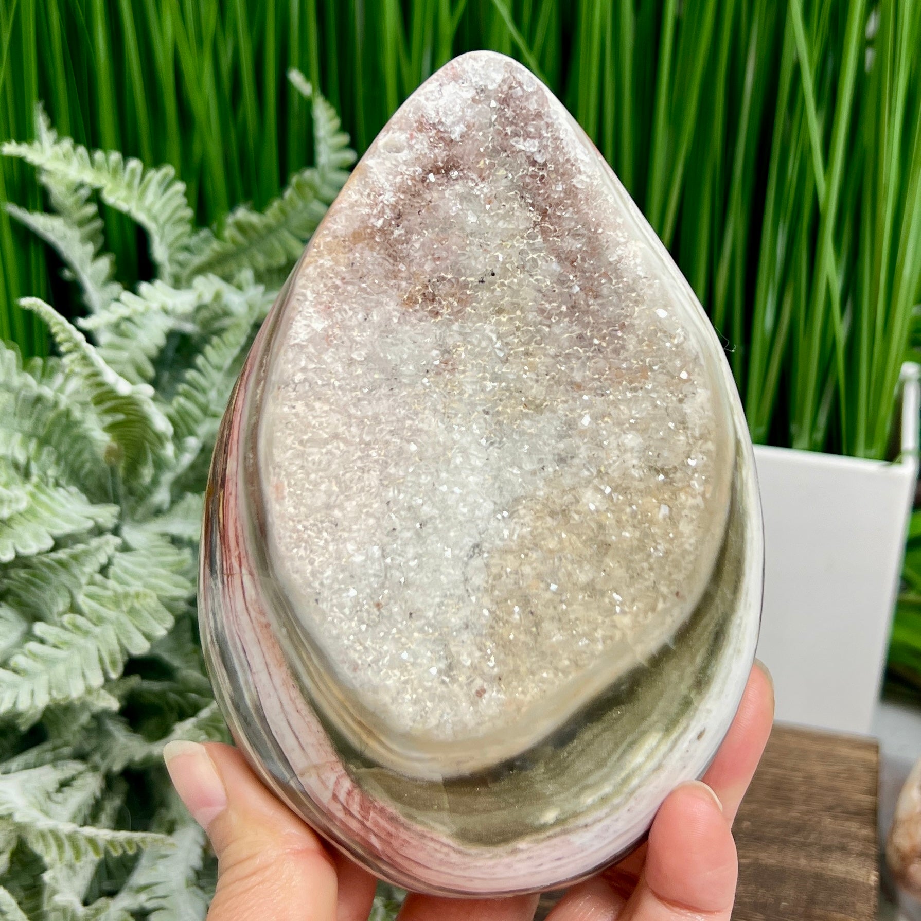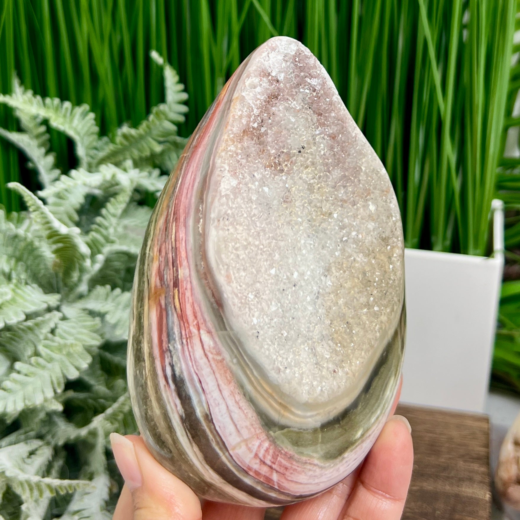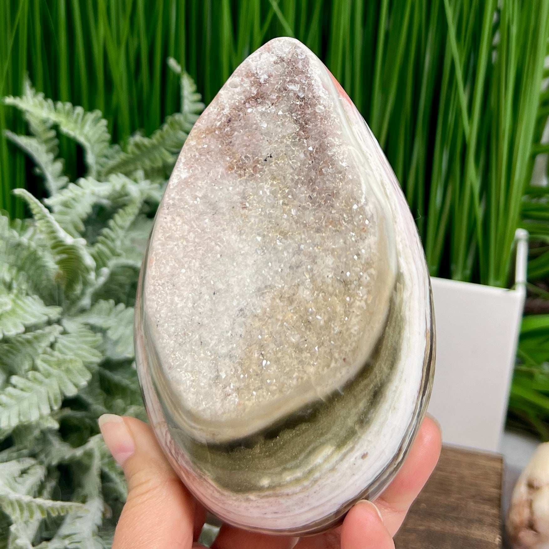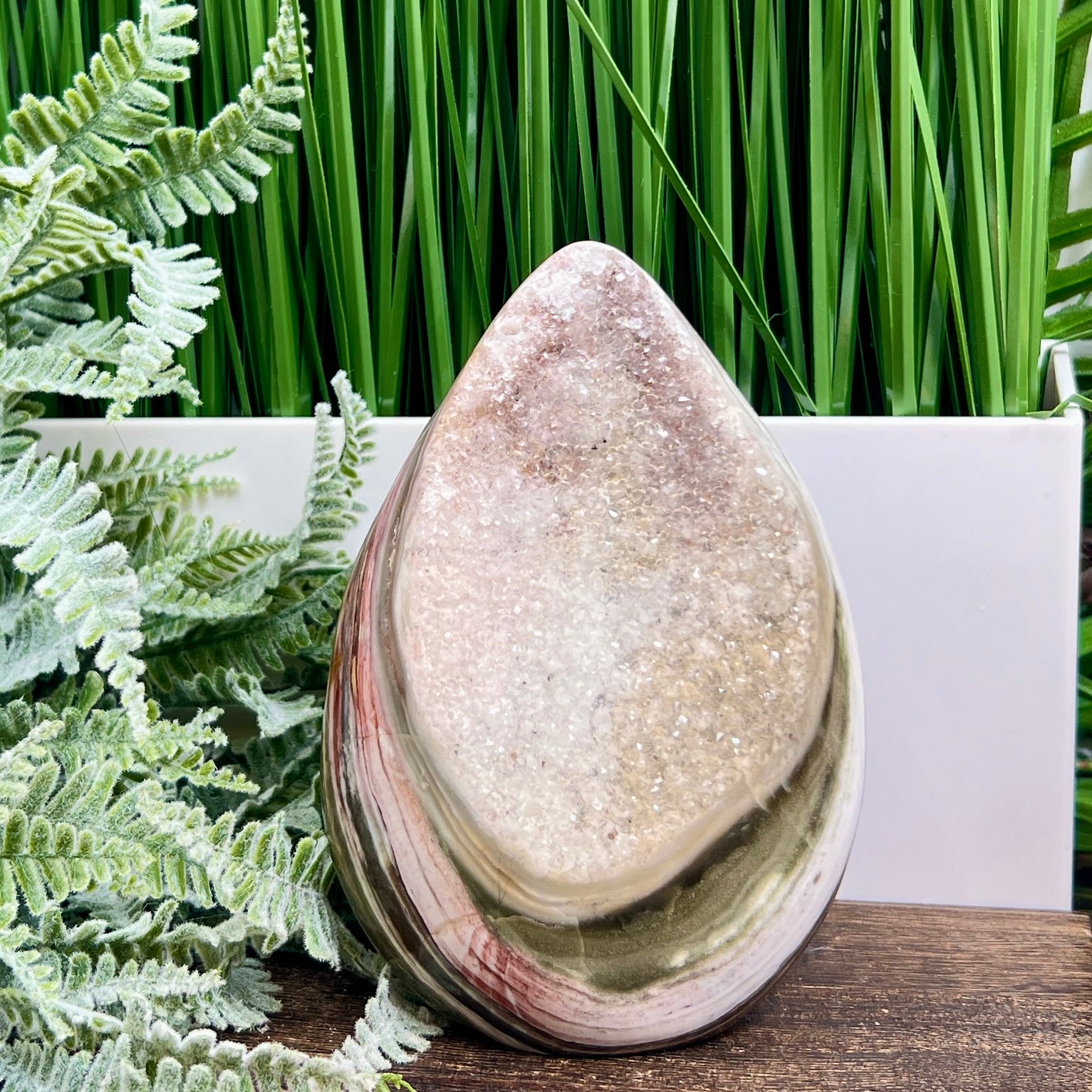 Ocean Sea Jasper with Quartz Free Form Flame Crystal Carving 826g