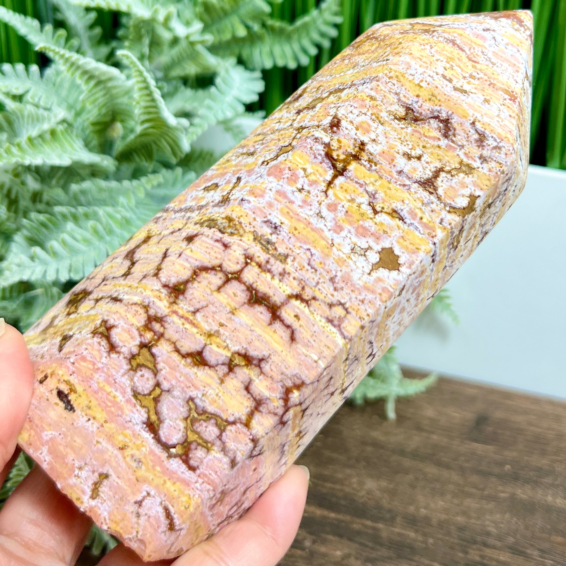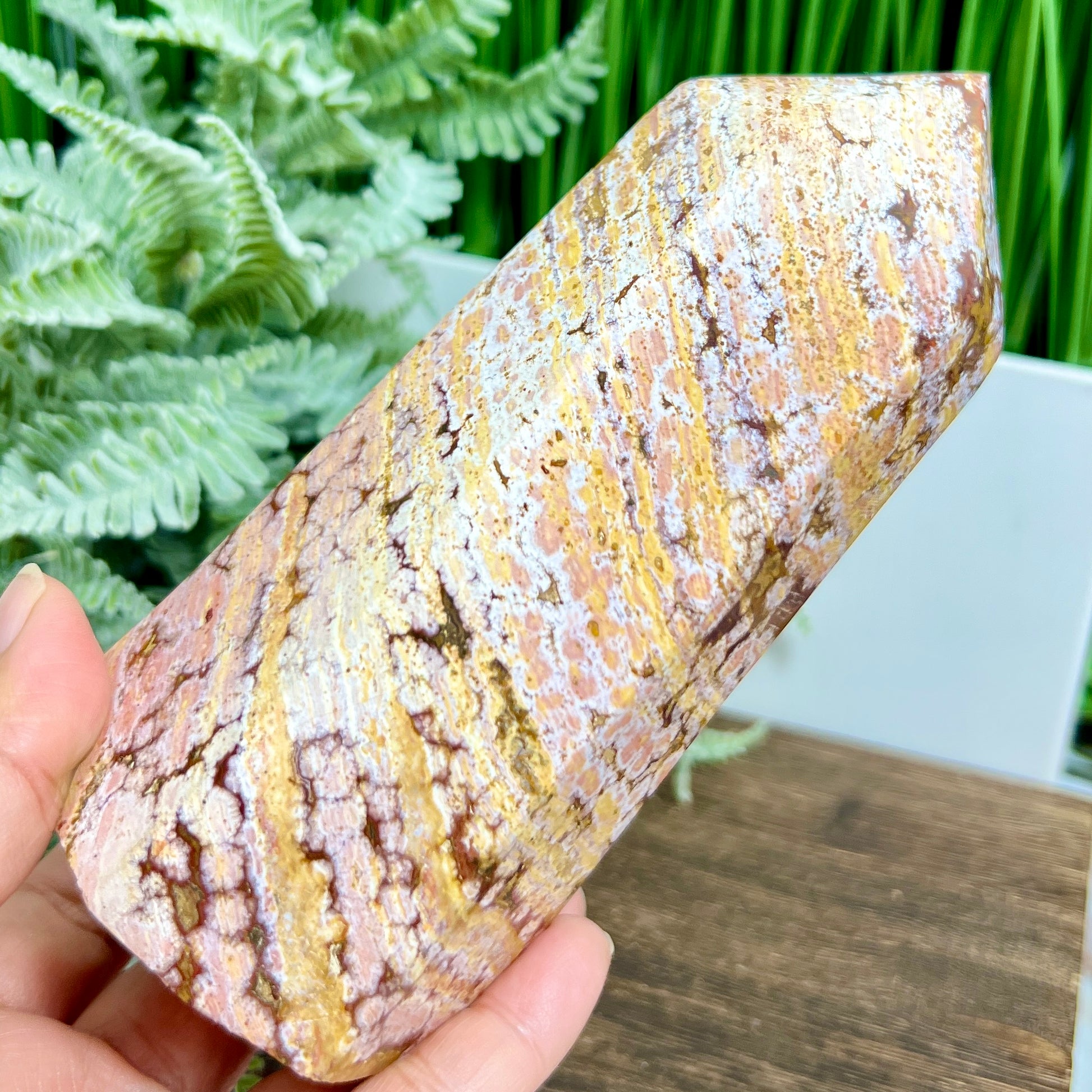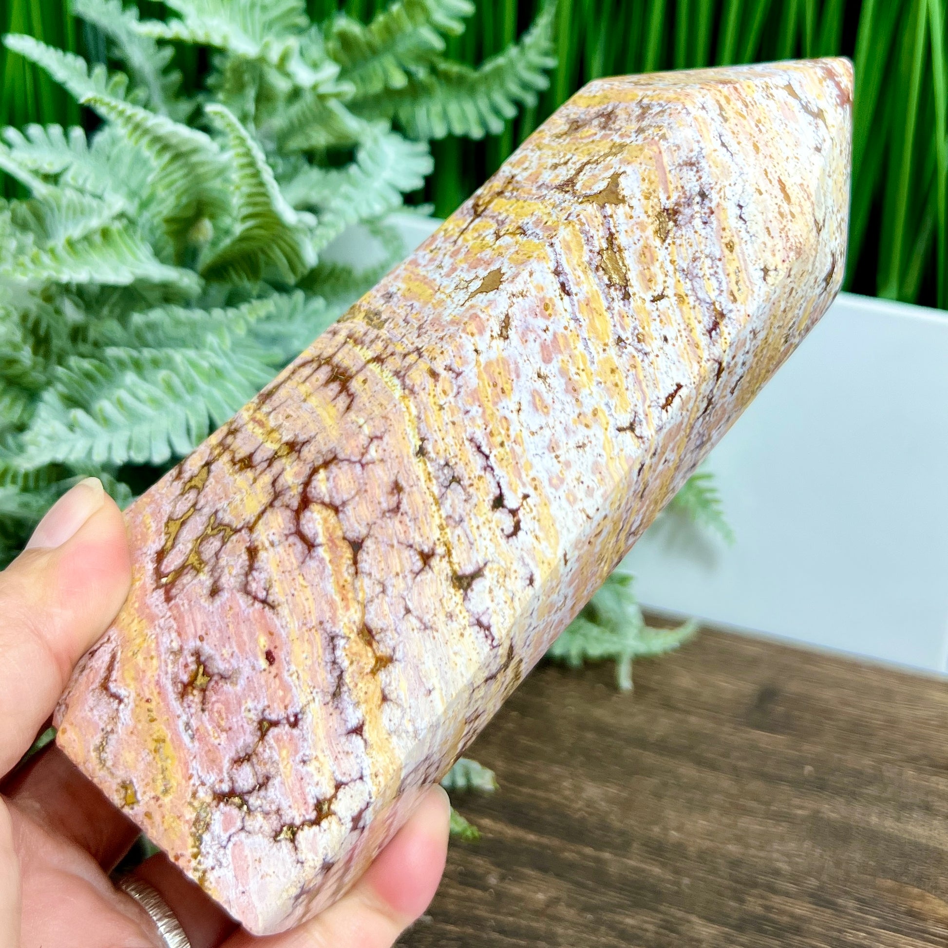 Ocean Sea Pink Orbicular Jasper Tower Healing Crystal Generator 864g 151mm