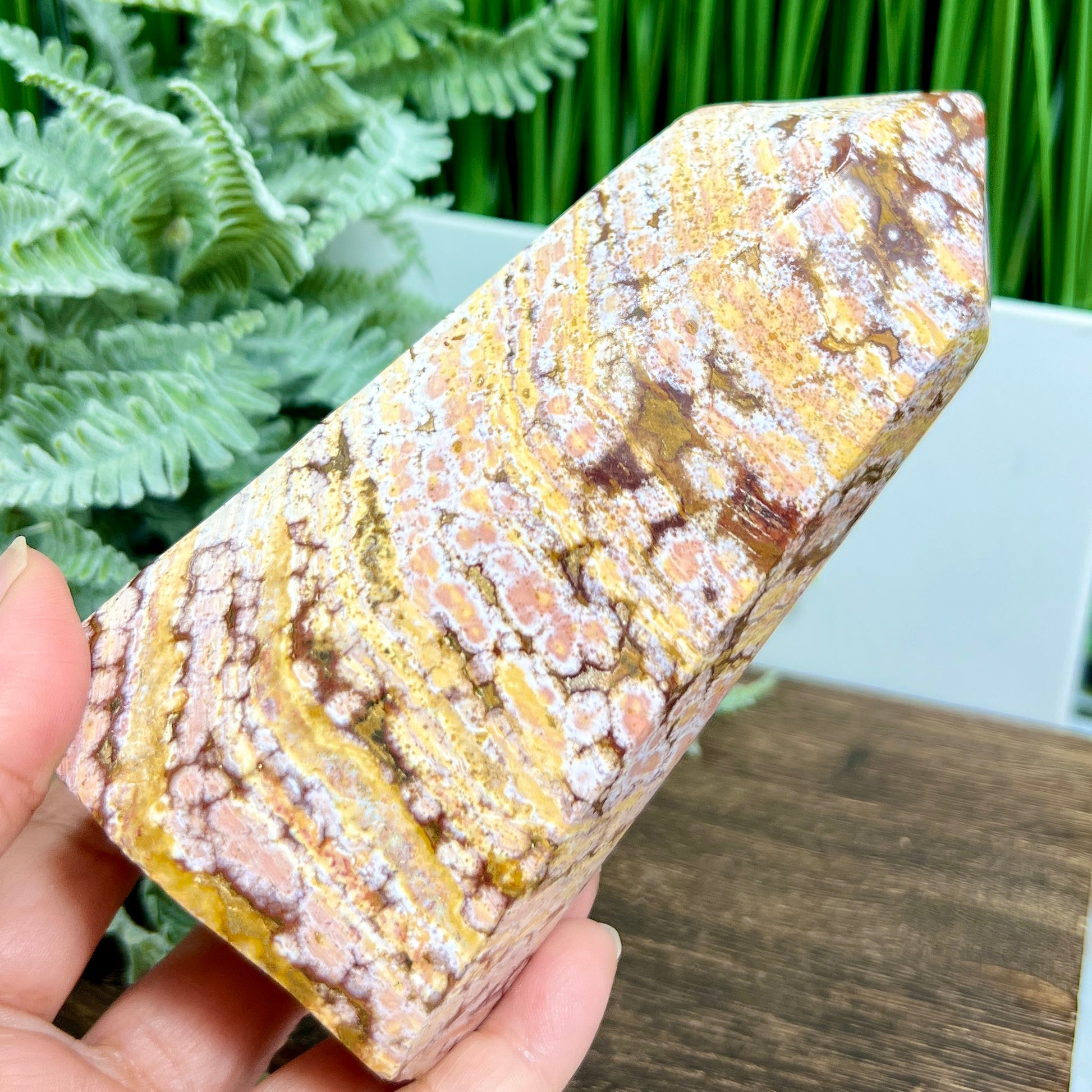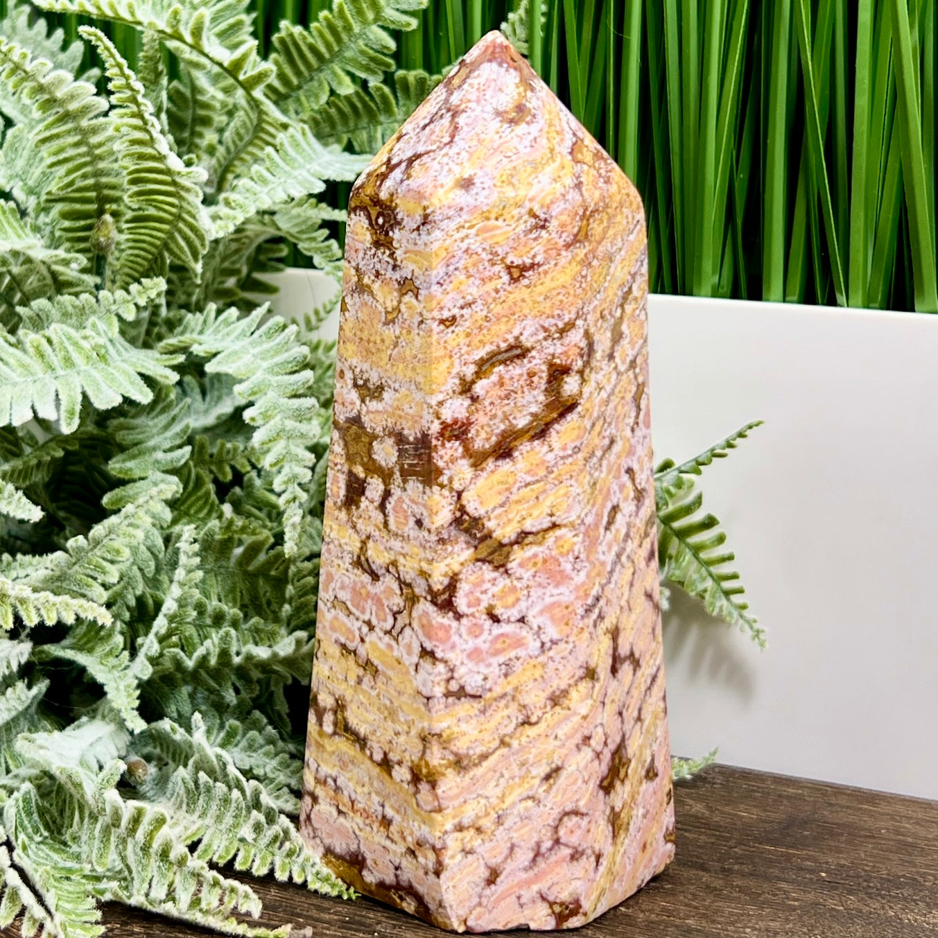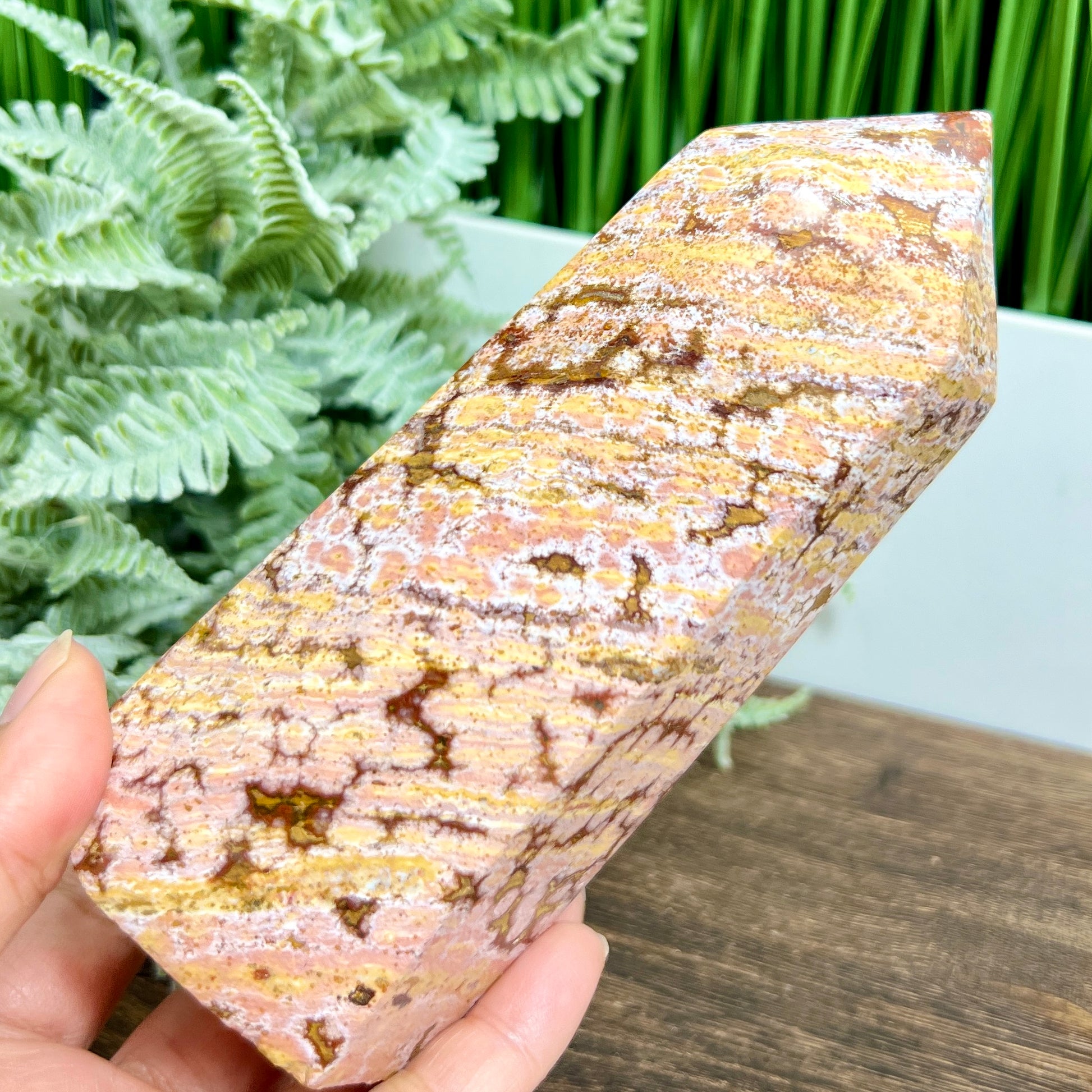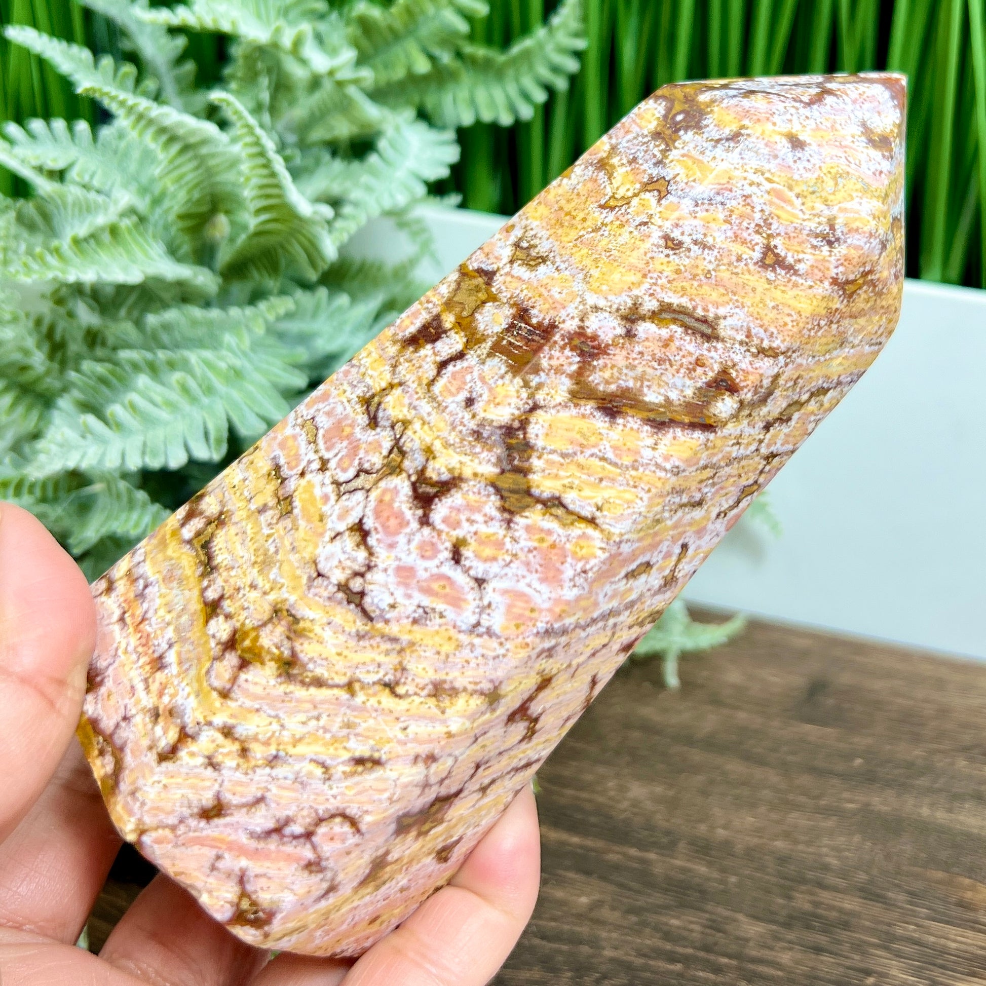 Ocean Sea Pink Orbicular Jasper Tower Healing Crystal Generator 864g 151mm