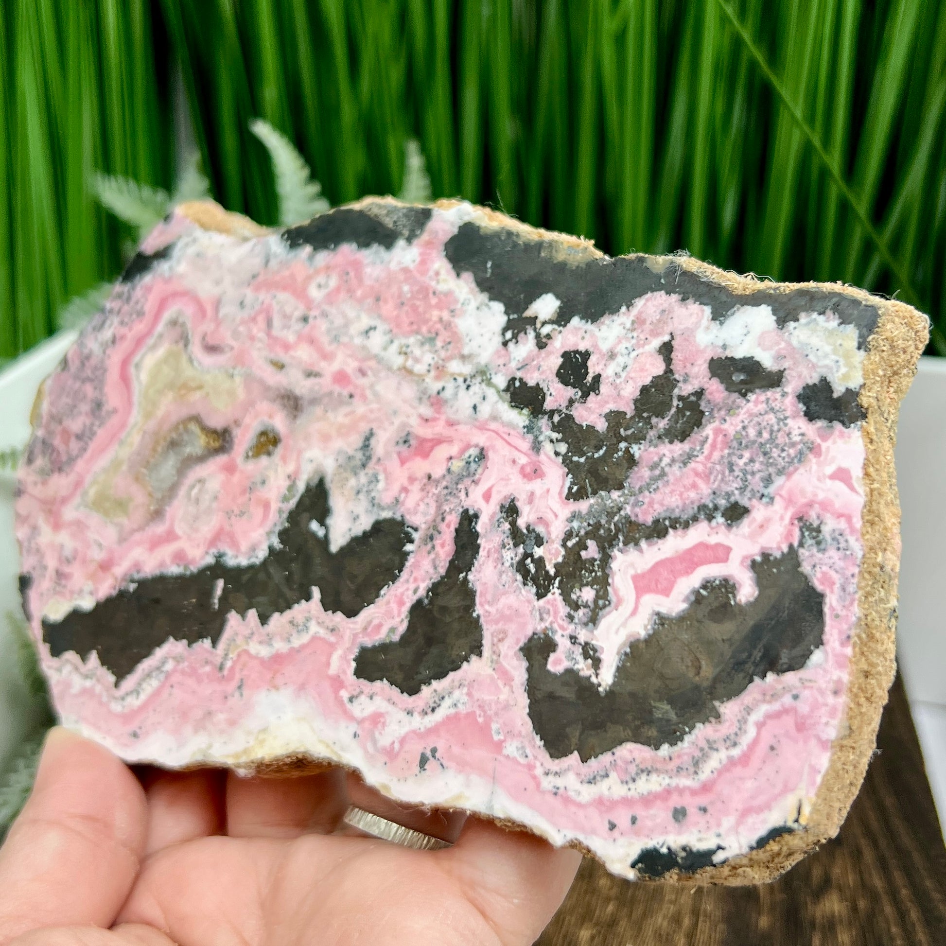 Peruvian Rhodonite Slice Slab with Stand Compassion Emotional Balance Crystal 538g
