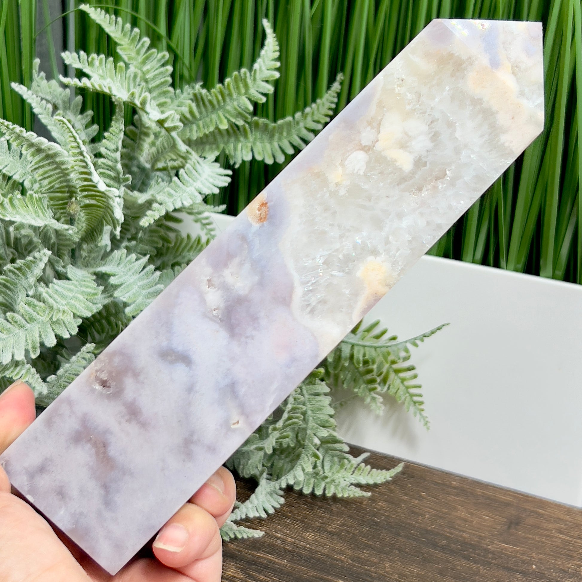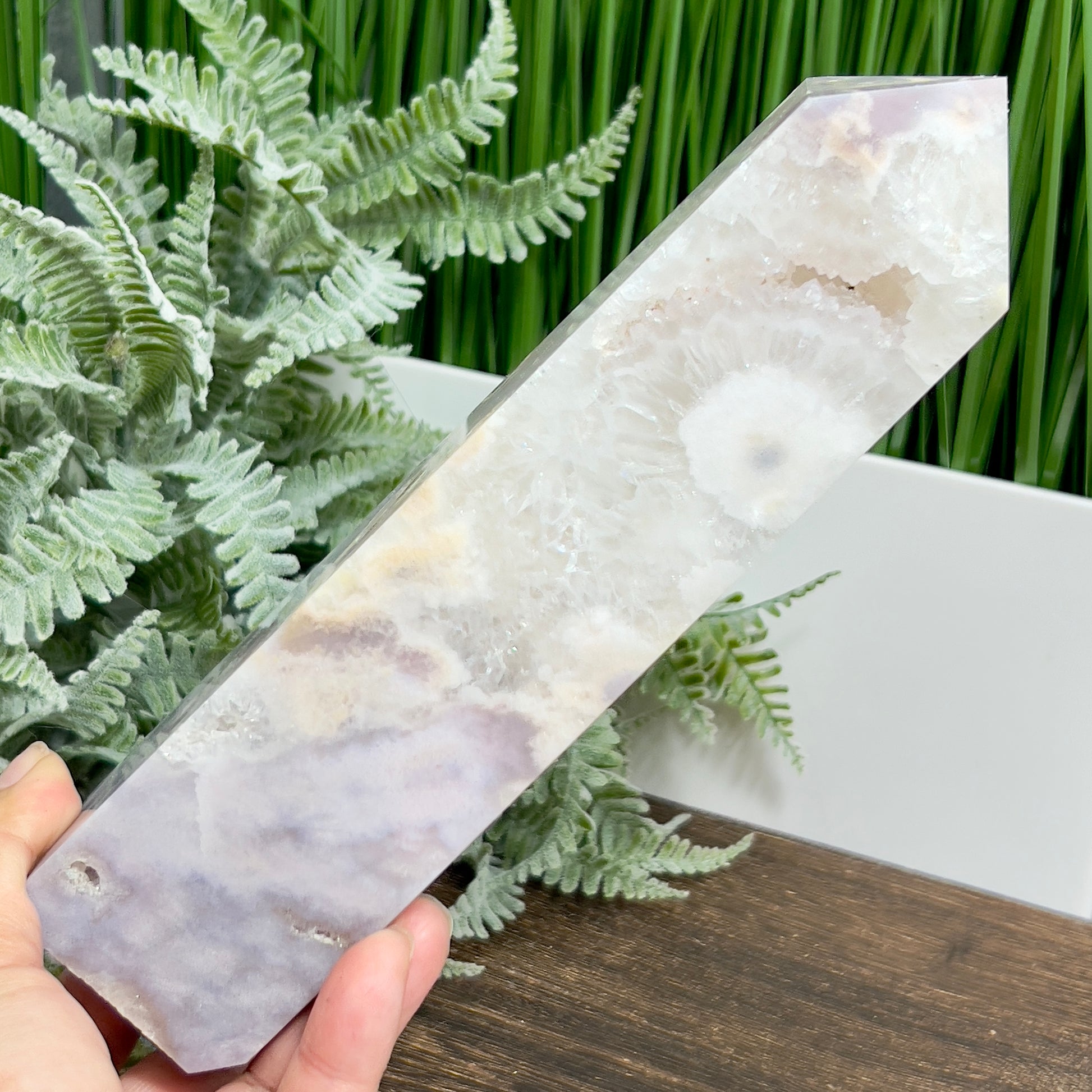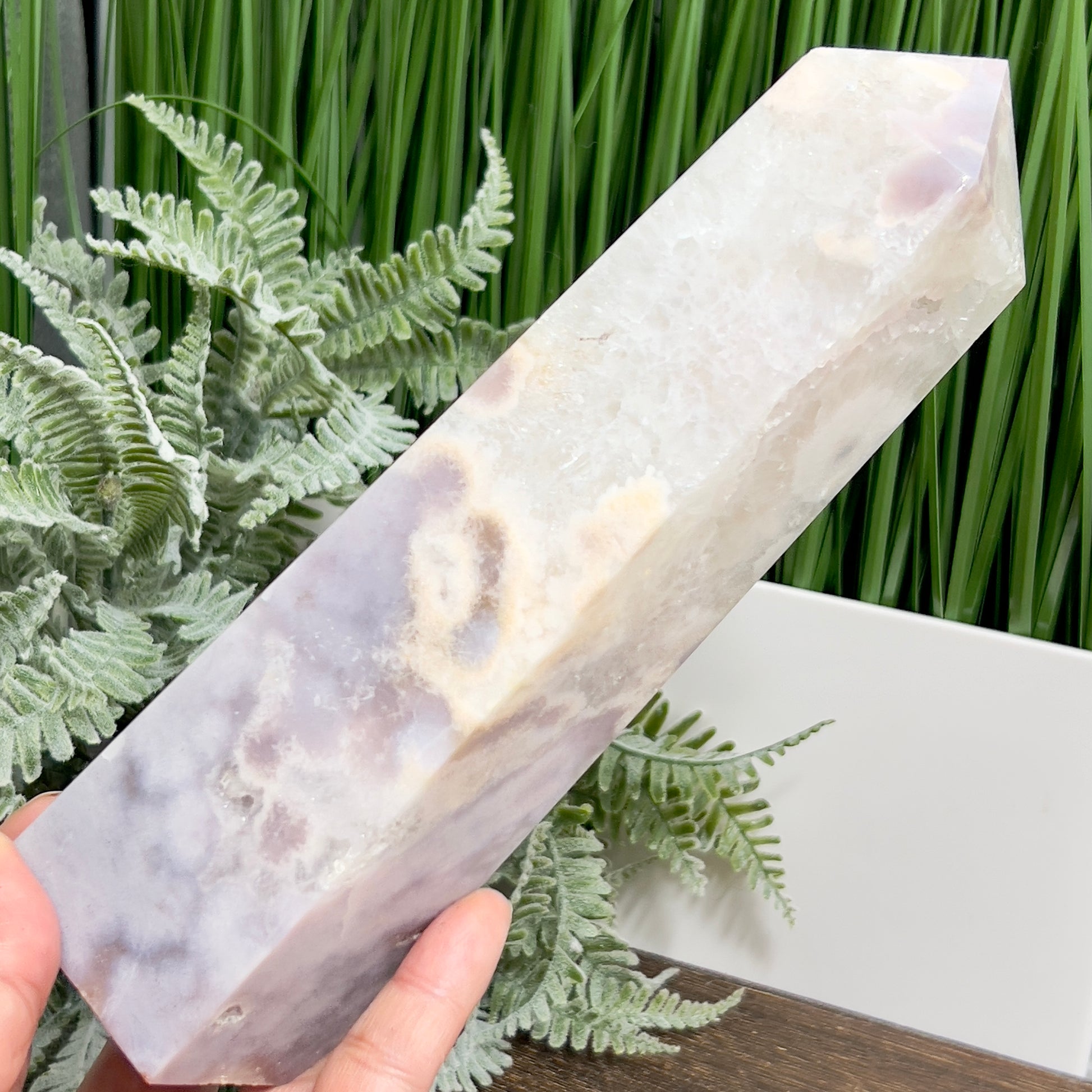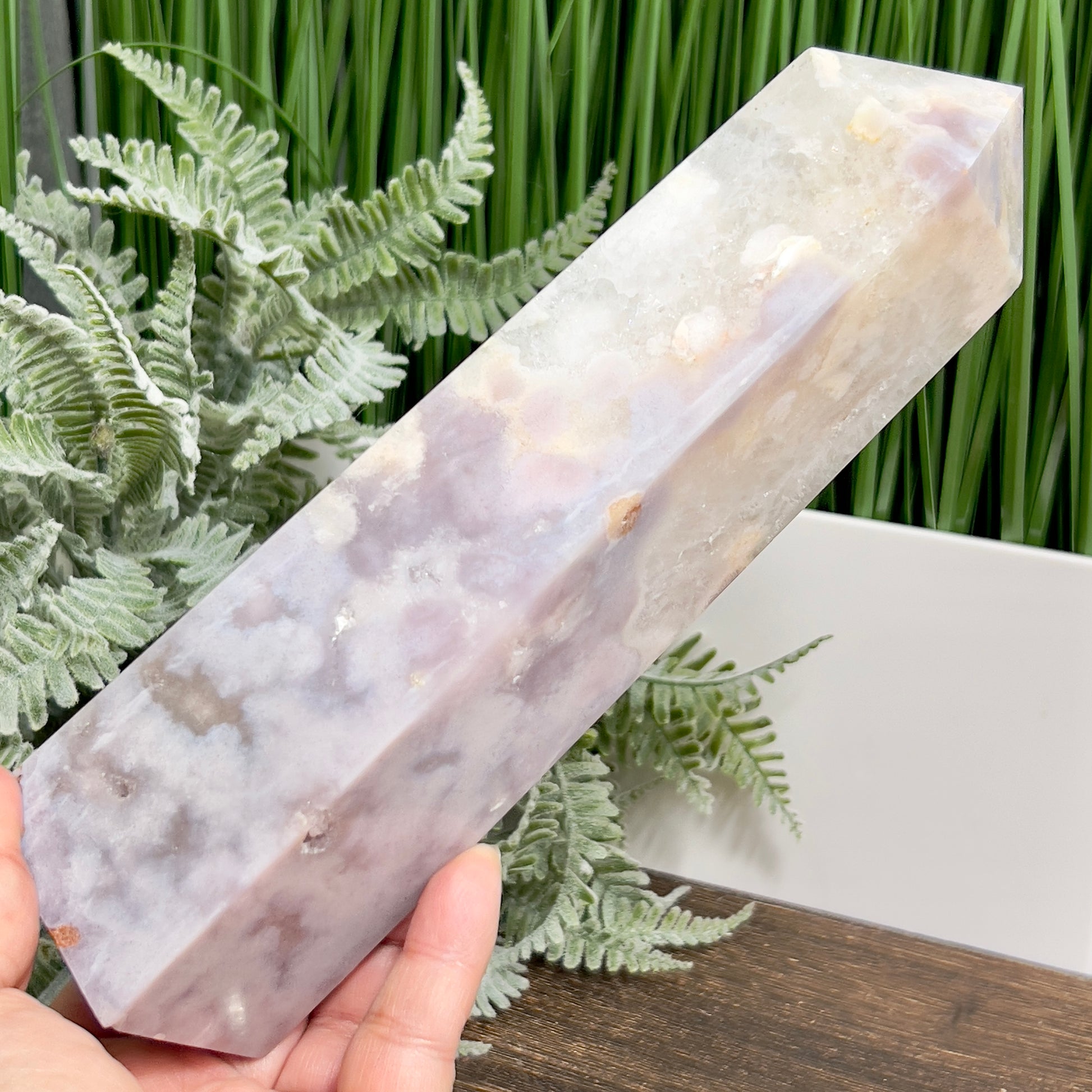 Pink Amethyst Flower Agate Quartz Tower Healing Crystal Generator 901g 200mm