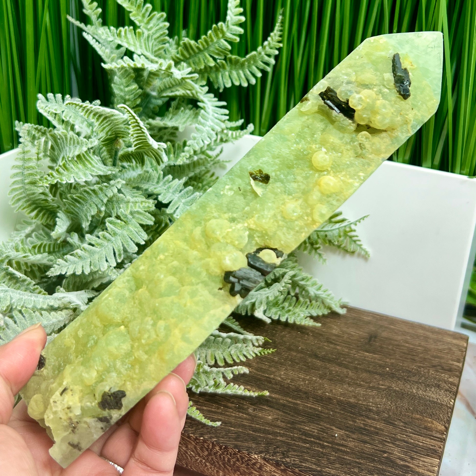 Prehnite with Epidote Black Tourmaline Tower Crystal Generator 798g 217mm