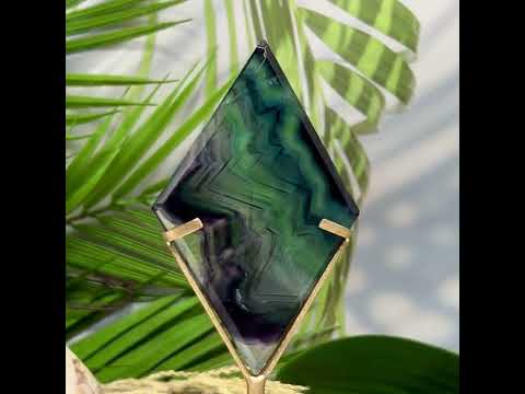 Rainbow Fluorite Diamond Rhombus on Stand Healing Crystal Home Decoration