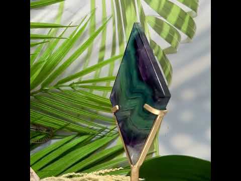 Rainbow Fluorite Diamond Rhombus on Stand Healing Crystal Home Decoration