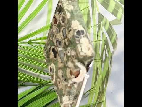 Rainforest Jasper Green Rhyolite Rhombus Display with Stand Healing Crystal Carving