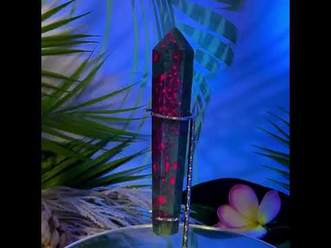 Ruby in Fuchsite UV Reactive Crystal Wand in Stand Generator 264g 165mm