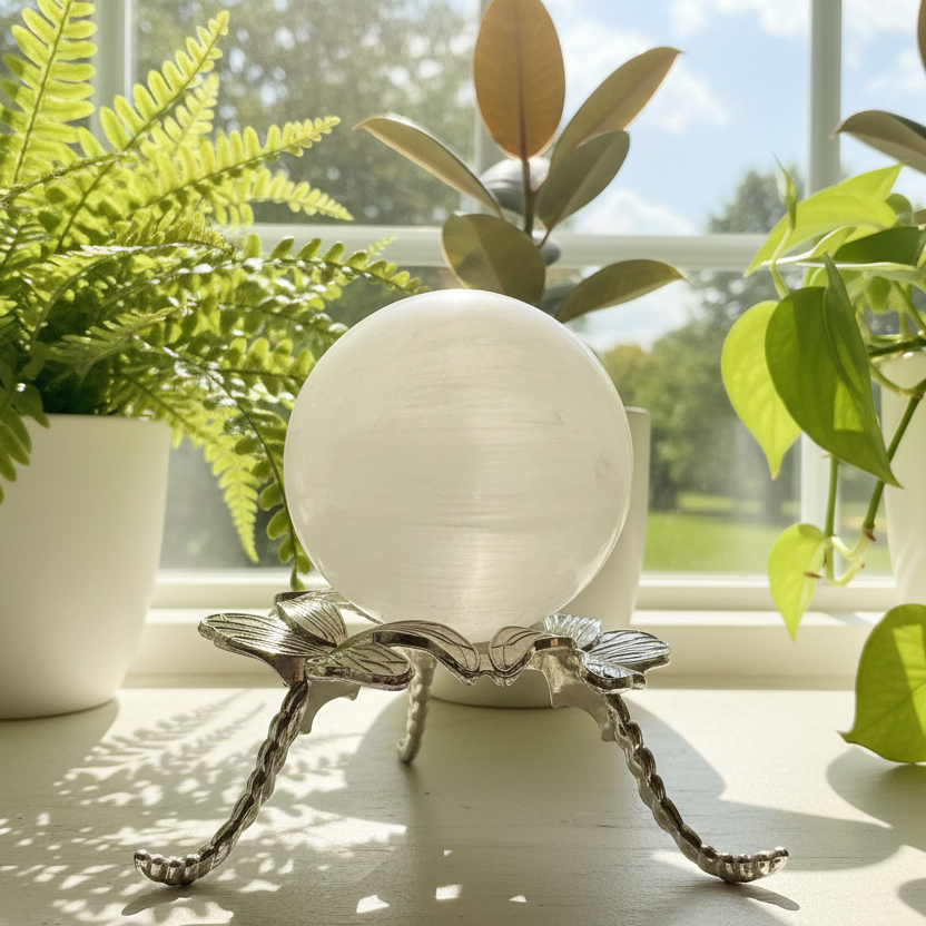 Satin Spar Gypsum Selenite Sphere Morocco Crystal Ball 204g 55mm