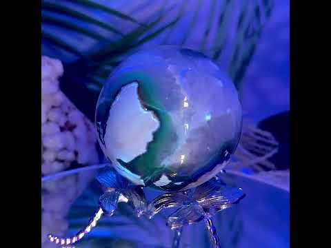 Volcanic Agate Quartz Sphere UV Reactive Crystal Ball 425g 68mm
