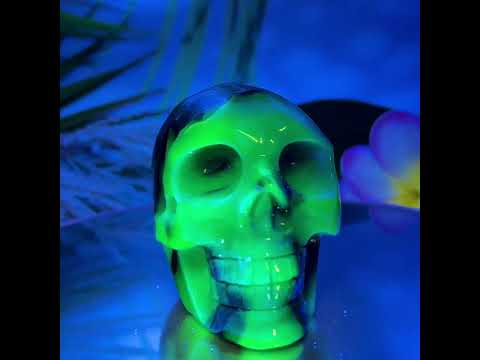 Volcanic Agate Skull UV Reactive Healing Crystal Carving 420g