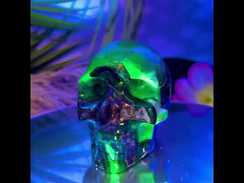 Volcanic Agate Skull UV Reactive Healing Crystal Carving 542g